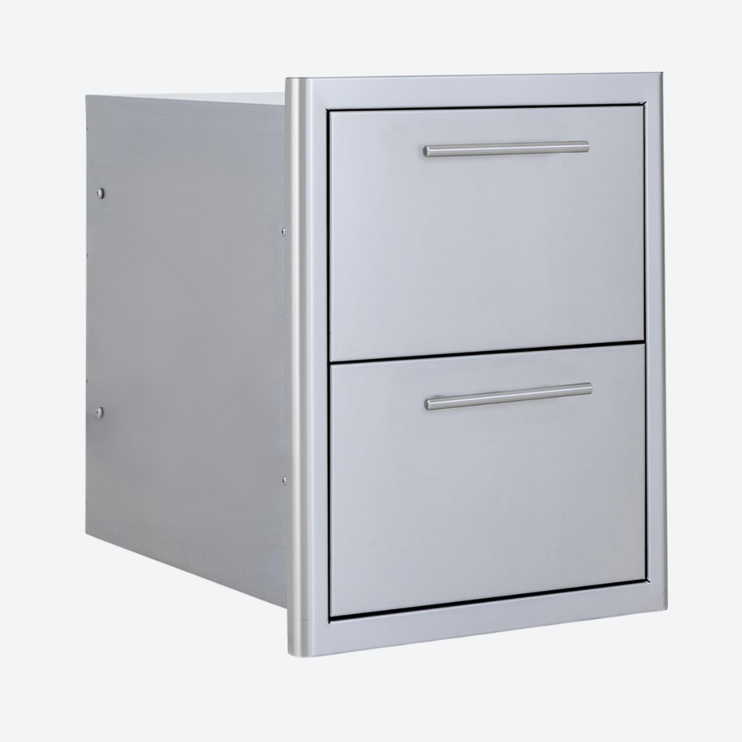 Este cajón de doble acceso Blaze ofrece iluminación ambiental, un diseño limpio y una construcción de calidad con acero inoxidable 304 de grado comercial, resistente a las inclemencias del tiempo. Con tiradores modernos y un diseño único de bisel completamente redondeado, este cajón le da un toque de calidad a su cocina exterior o isla de barbacoa. ¡Los cajones de almacenamiento Blaze son la solución perfecta para el almacenamiento al aire libre!