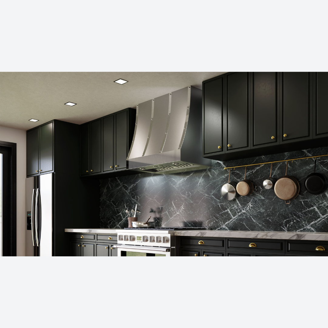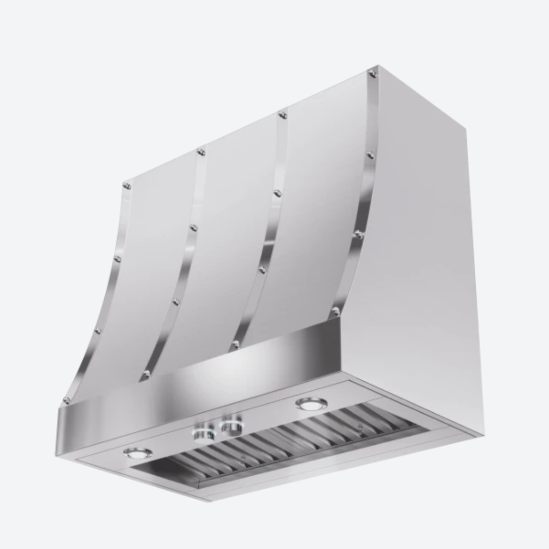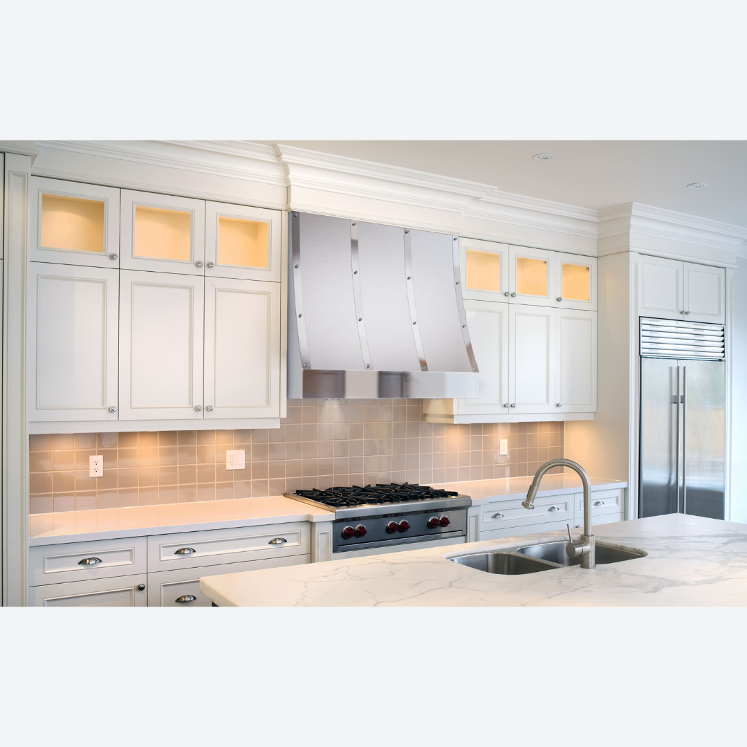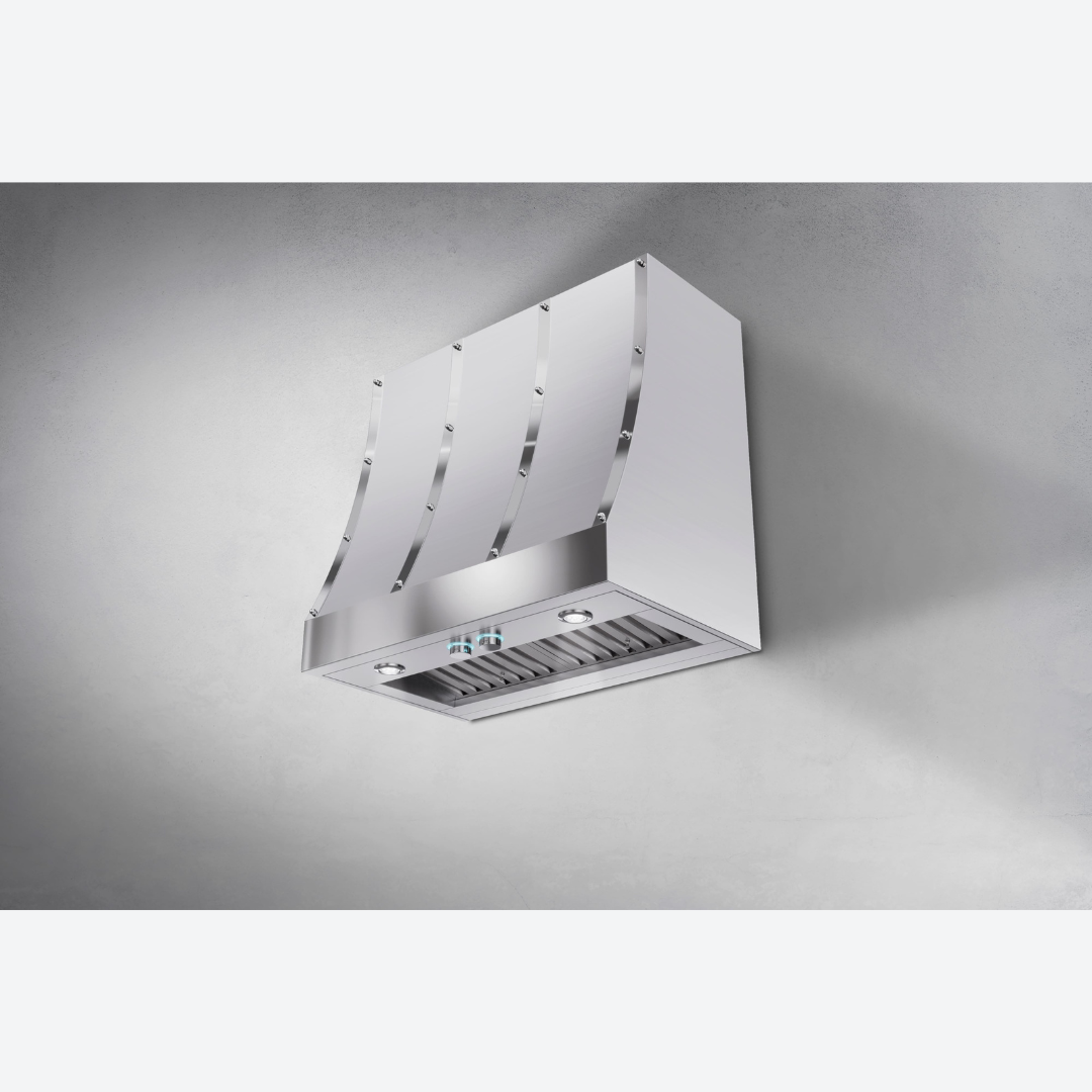 La robusta estructura y el impresionante acero inoxidable de la campana Catania reflejan cómo el volcán Etna y el mar Jónico rodean la ciudad de Catania, en la isla de Sicilia, Italia. El diseño en forma de piazza, los bordes sin costuras, el borde frontal de acero inoxidable espejado y la banda decorativa con remaches hacen una declaración audaz y complementan incluso las cocinas más glamorosas.