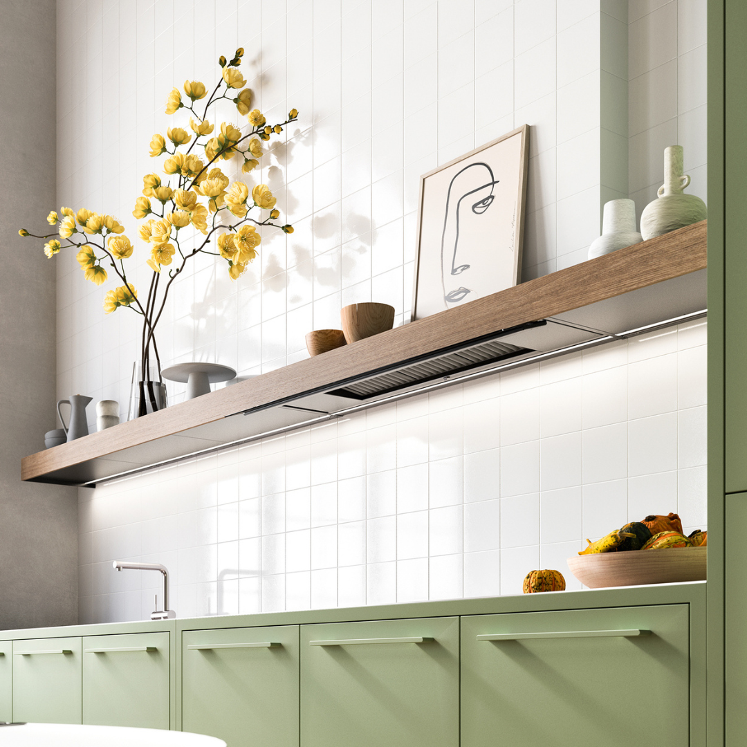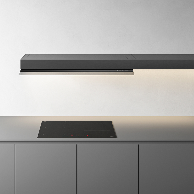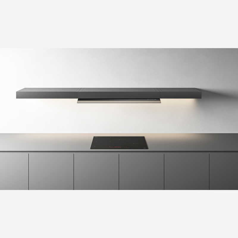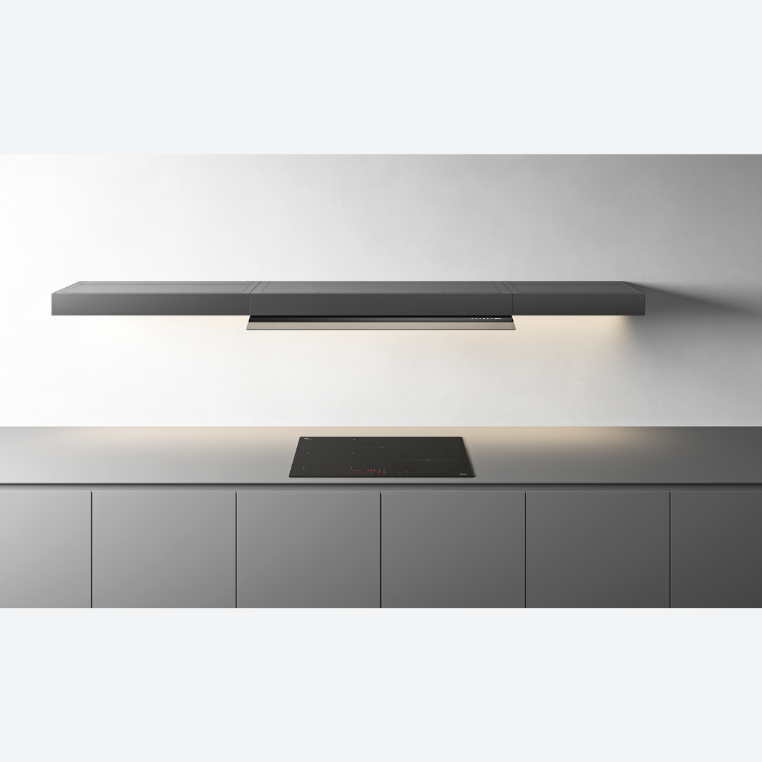 La innovadora campana de repisa Falmec Shelf combina elegancia minimalista y máxima funcionalidad en solo 10 cm de grosor, integrando tecnología Multi-Air para una potente extracción silenciosa, luz LED dinámica que realza tu espacio, control táctil discreto mediante un cristal extraíble y la opción de personalizar su frontal para adaptarlo a cualquier estilo de cocina.