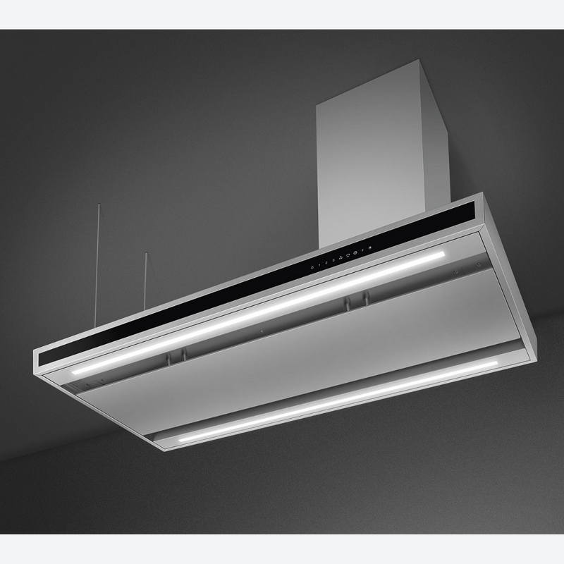Campana de isla de 120 cm en elegante acero inoxidable, ideal para cocinas amplias y modernas. Ofrece una extracción potente, operación silenciosa y filtros lavables que facilitan su mantenimiento diario.