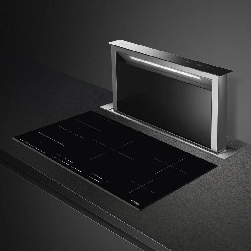Con la campana extractora Scirocco Lux Vidrio en Negro de 36 pulgadas de Faber, podrás disfrutar de un diseño innovador y elegante que se adapta perfectamente a tu cocina. Esta campana cuenta con un calado descendente ideal para instalaciones en islas o en paredes con poco espacio de gabinete.
