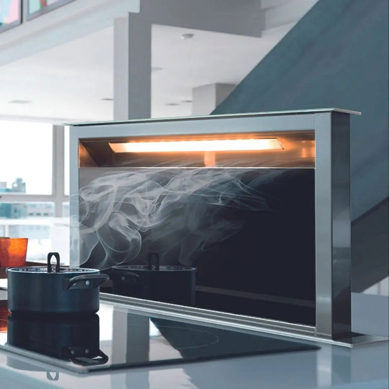 Con características de seguridad integradas y la posibilidad de elevarse 15 pulgadas por encima del mostrador con solo presionar un botón, esta campana ofrece comodidad y funcionalidad en un solo producto. Además, puedes controlarla de forma remota con un control remoto opcional compatible con ADA (se vende por separado). Faber Technologies garantiza la calidad de este modelo, que cuenta con un motor de alta calidad y filtros de grasa de malla. ¡Haz de tu cocina un espacio elegante y funcional con la campana Scirocco Lux Vidrio en Negro de Faber!