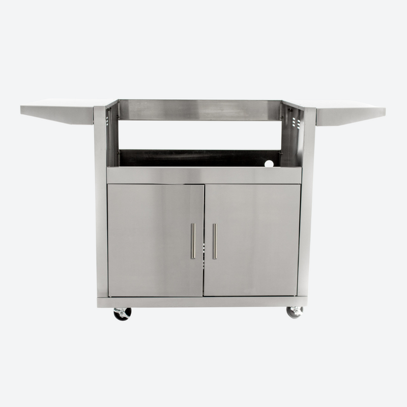 Este carrito para parrilla Blaze de acero inoxidable está diseñado específicamente para albergar las parrillas de gas Blaze de 32 pulgadas. Su construcción de acero inoxidable garantiza una larga duración para años de uso al aire libre y sus cuatro ruedas giratorias de alta resistencia permiten reubicar la parrilla fácilmente cuando sea necesario. Los dos estantes laterales de acero inoxidable mantienen sus herramientas de barbacoa a mano y ofrecen una cómoda zona de trabajo mientras cocina. El carrito para parrilla Blaze también cuenta con dos puertas frontales con modernas manijas para acceder al gabinete de cierre suave debajo de la parrilla, donde puede guardar el tanque de propano, la cubierta de la parrilla y los accesorios.