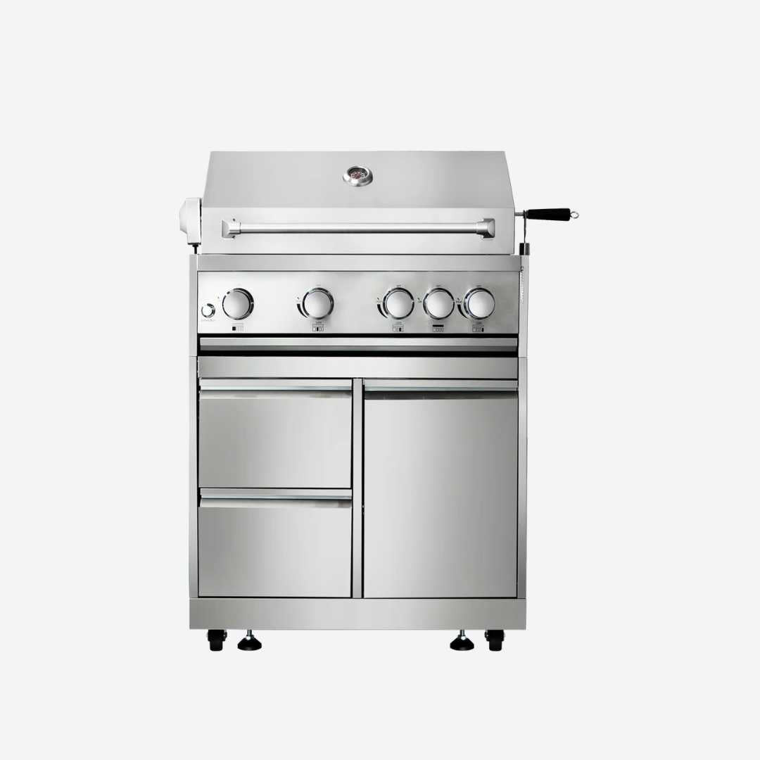 THOR Kitchen ofrece la potencia y el rendimiento de un electrodoméstico profesional de alta gama a un precio accesible. El gabinete para asador THOR Kitchen de 81 cm está diseñado para nuestro asador de isla de gas propano empotrado de 4 quemadores (no incluida). Con dos cajones y un gabinete inferior, ofrece espacio adicional para guardar sus utensilios de cocina, toallas de chef y productos de limpieza.
