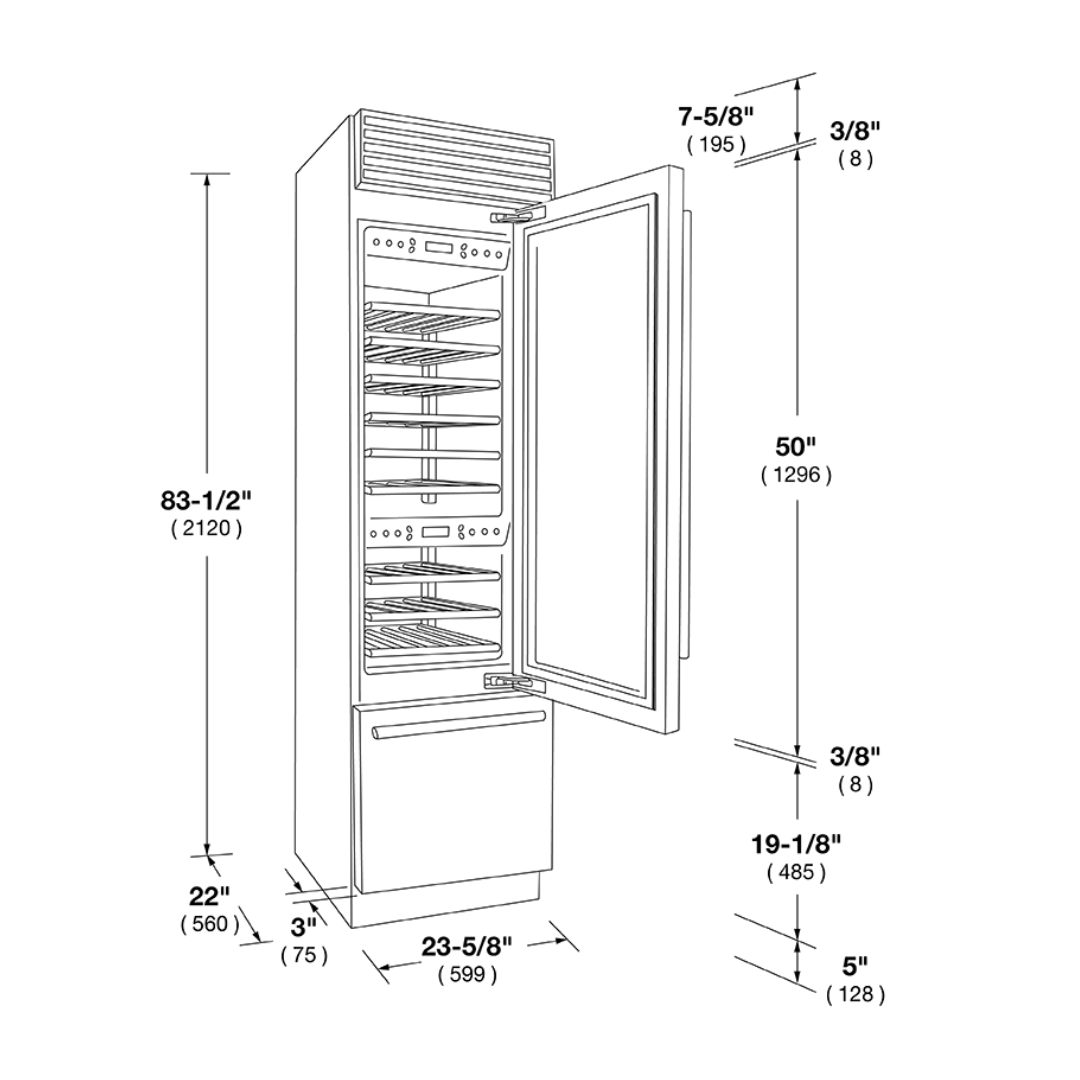 Cava de vinos bisagra derecha 60.33 cm 23.75" FULGOR MILANO F7PBW24S1-R