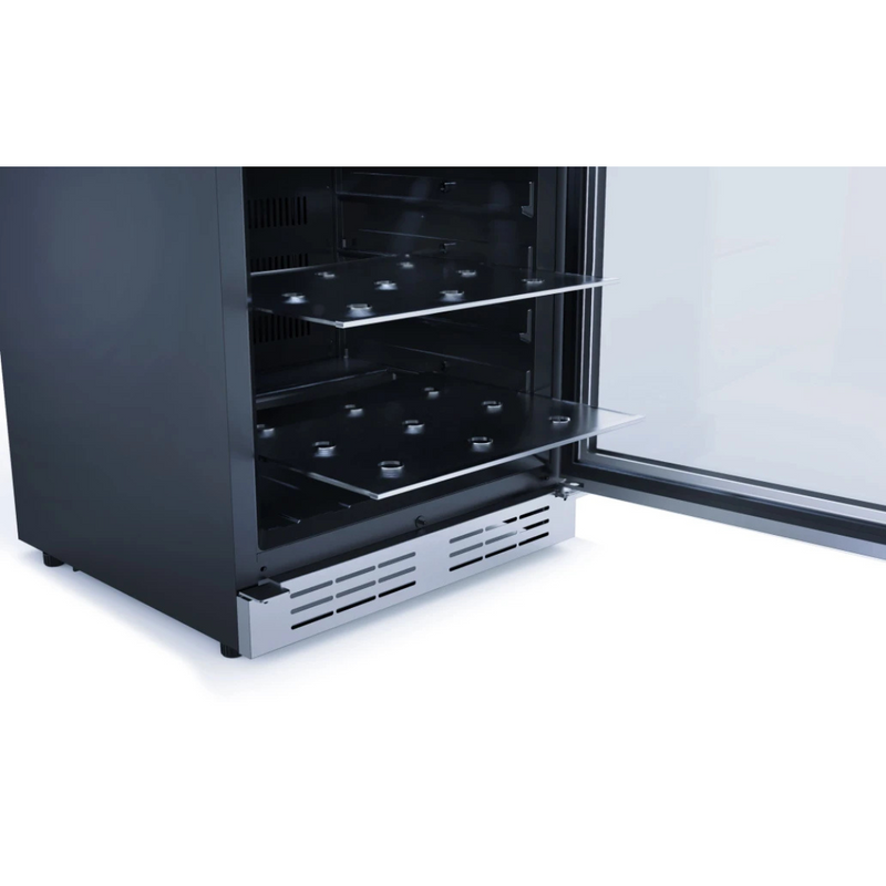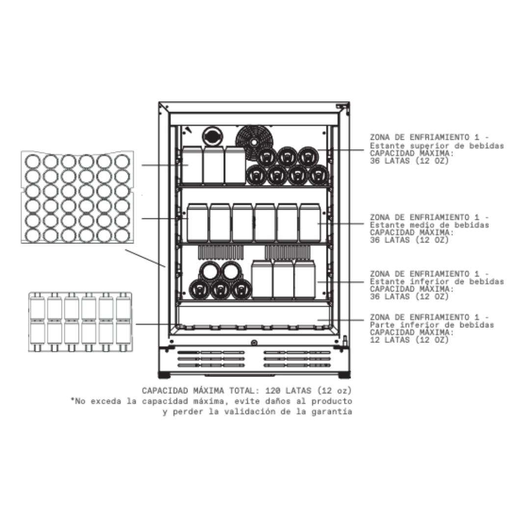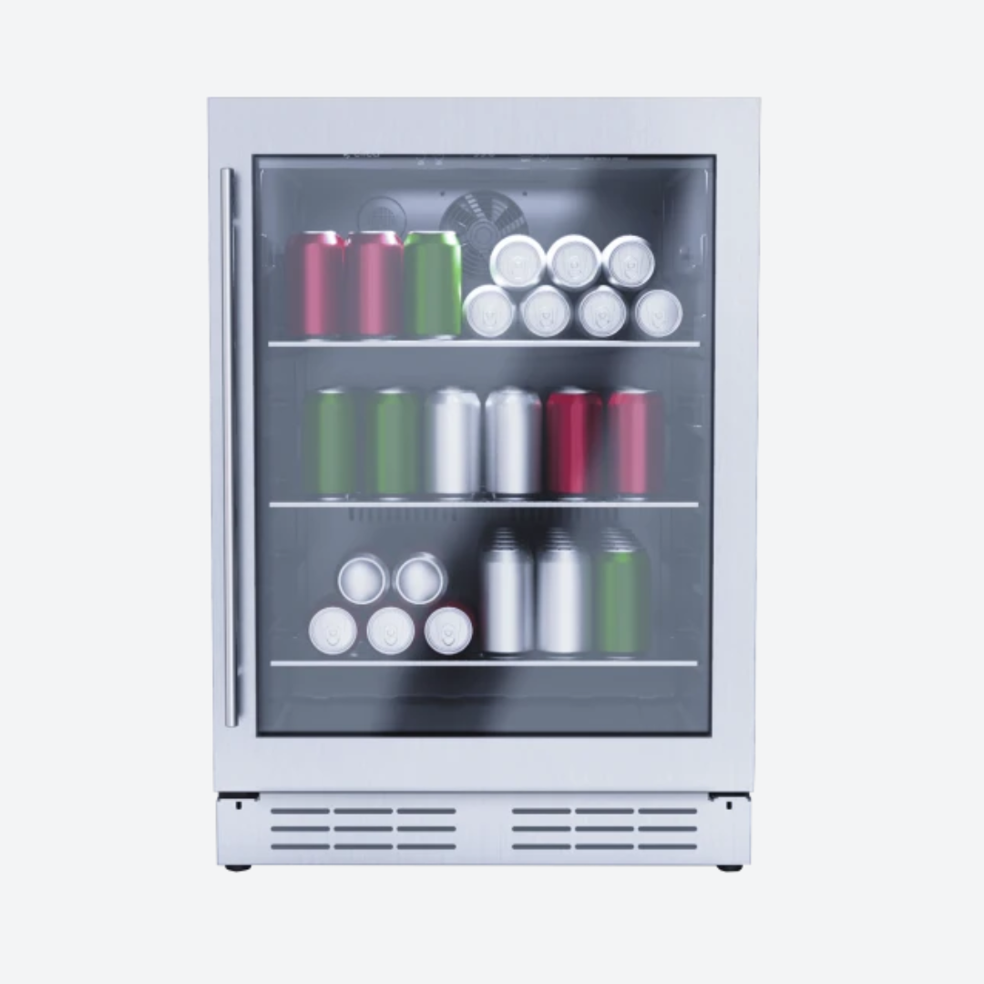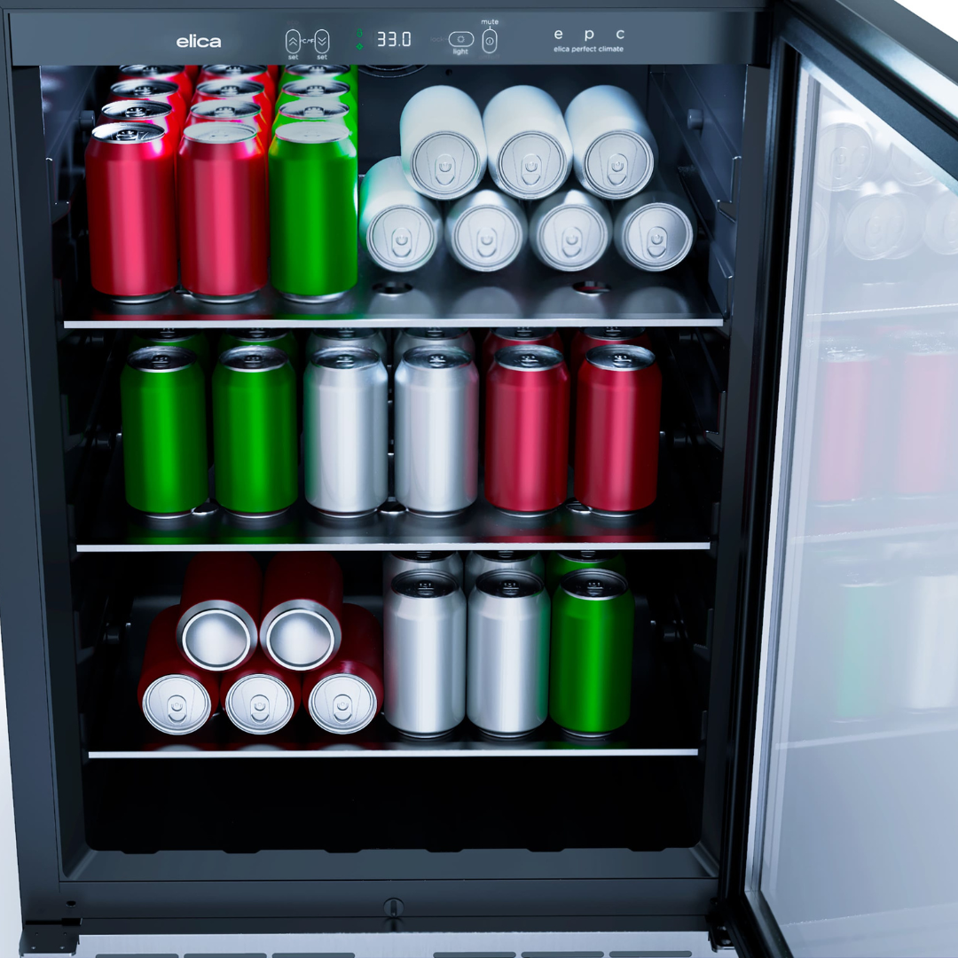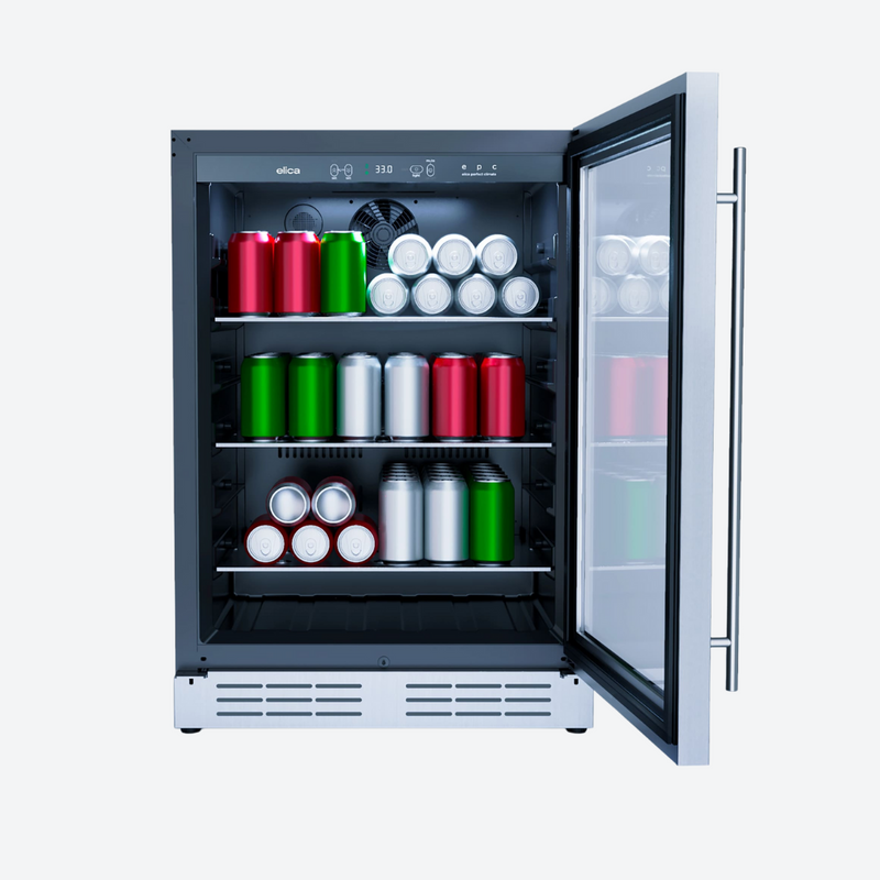 RISERVA - EBS51SS1 crea un ambiente ideal para tus bebidas gaseosas favoritas. Este refrigerador de 60 cm tiene capacidad para hasta 100 latas (355 ml). Cuenta con 3 estantes deslizantes de plexiglás ajustables, estructura de acero inoxidable 304 con puerta de vidrio de doble capa resistente a los rayos UV y un exclusivo diseño de esquinas ocultas que le da una apariencia más refinada y un ajuste más preciso dentro del gabinete.