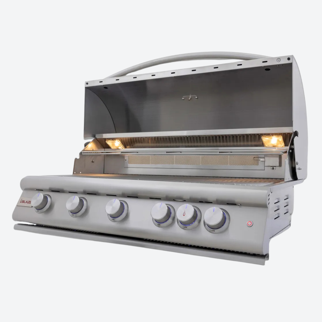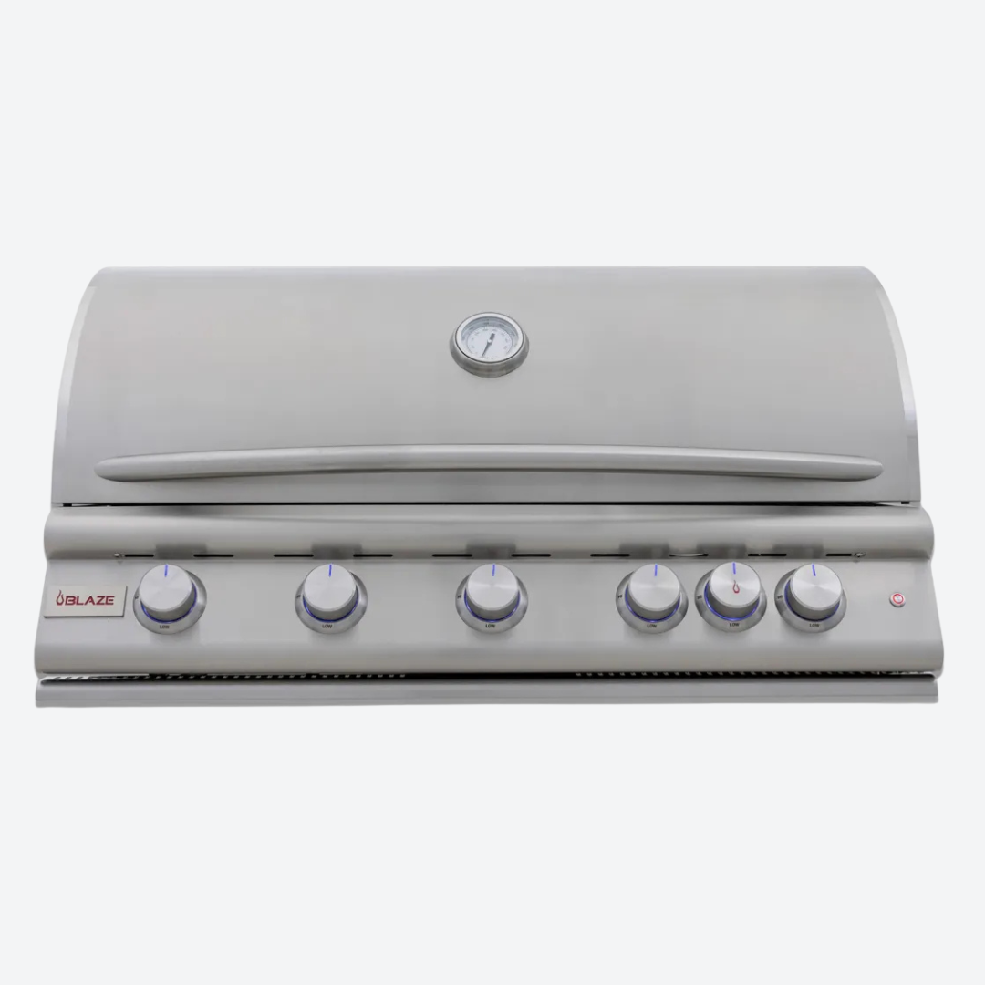 Asador de gas natural empotrada Blaze LTE+ 5 quemadores, campana elevadora 100.33 cm 39.5″ BLAZE BLZ-5LTE3-LP/NG