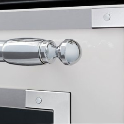 Con un acabado en negro mate, esta cocina superamplia cuenta con una placa de cocción con seis quemadores de gas, incluyendo un quemador de potencia de doble anillo, un quemador de alta eficiencia con control independiente de las llamas y una plancha eléctrica de acero inoxidable. El horno principal cuenta con un ventilador de convección de flujo de aire equilibrado y una parrilla de gas. El práctico horno auxiliar, sin ventilador, cuenta con una función especial de baja temperatura. Ambos hornos incluyen parrillas telescópicas deslizantes y bisagras de movimiento suave. Las puertas de triple vidrio minimizan la pérdida de calor. Se ofrecen campana extractora y protector contra salpicaduras a juego.