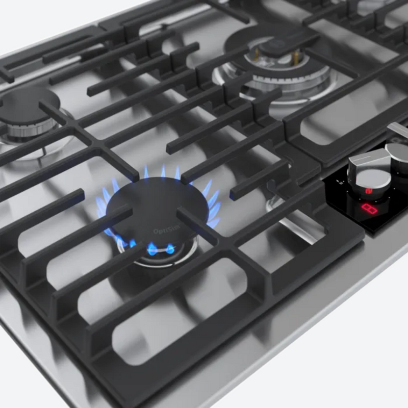 El quemador OptiSim® garantiza una distribución uniforme del calor y minimiza los puntos calientes, perfecto para cocinar a fuego lento salsas delicadas o derretir chocolate con facilidad. Pase fácilmente de fuego lento a ebullición con el quemador de doble llama, que ofrece dos anillos de calor para opciones de cocción versátiles.