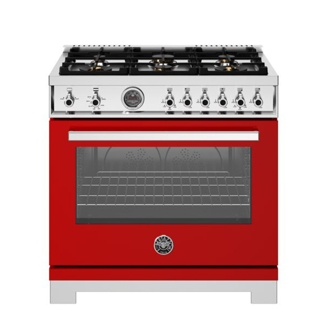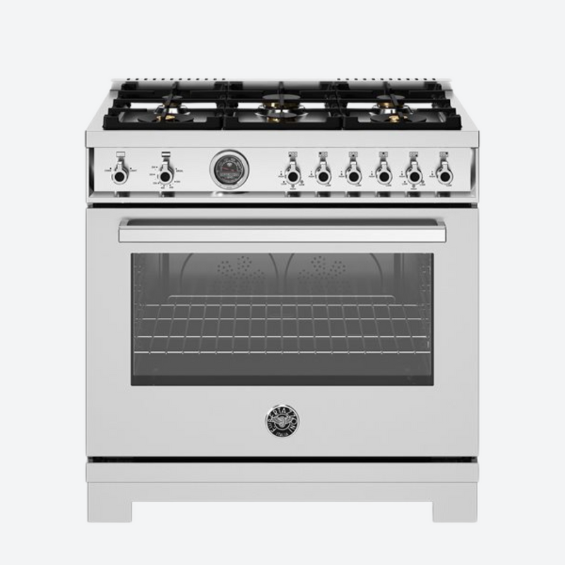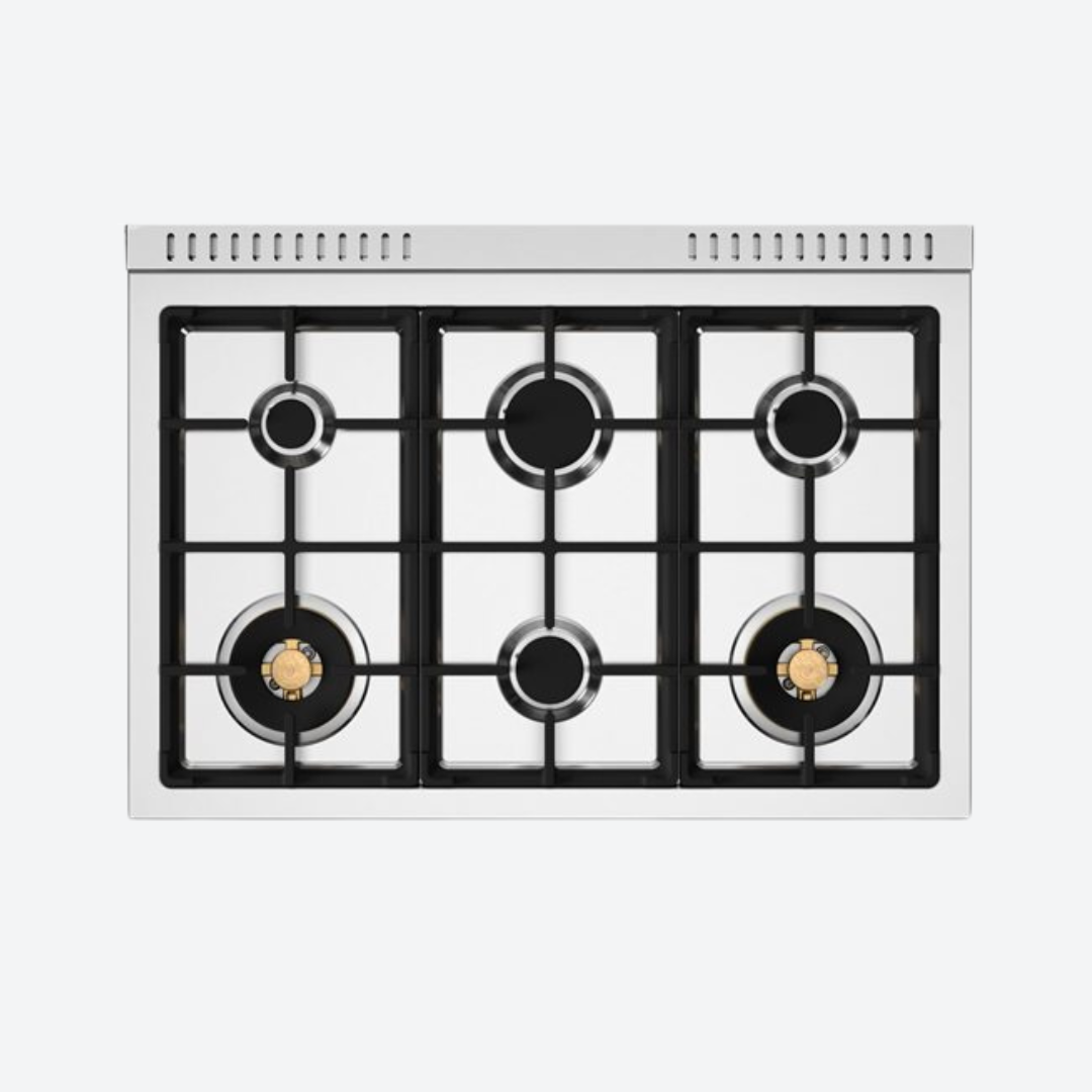 Estufa de gas 6 quemadores de latón y plancha de hierro fundido 91.14 cm 35.87″ BERTAZZONI PRO366BCFGMXT