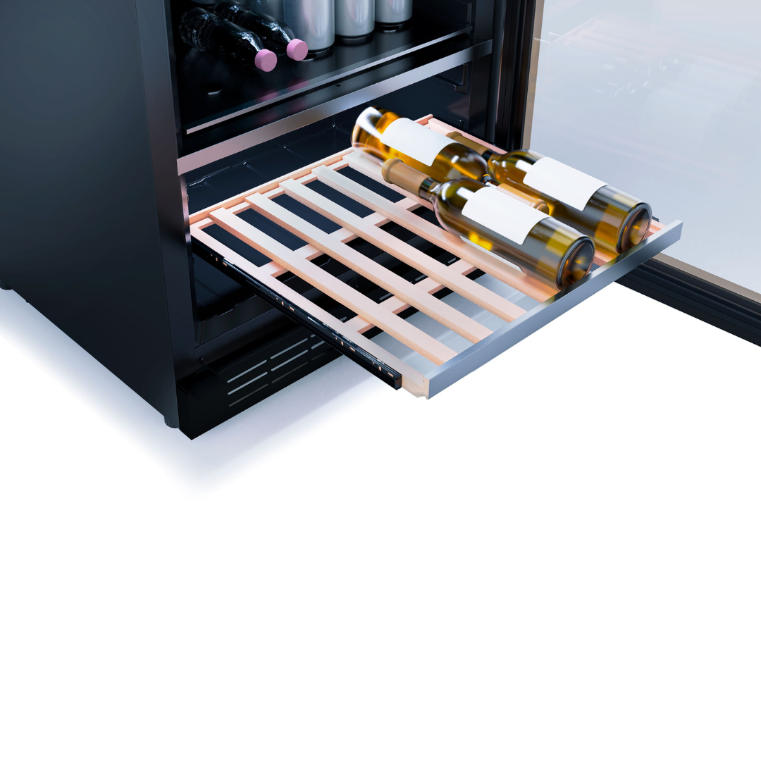 Una solución brillante que satisface todas sus necesidades, cuenta con dos zonas de enfriamiento diferentes, ajustables a diferentes temperaturas para preservar una variedad de bebidas y vinos en su frescura óptima.
