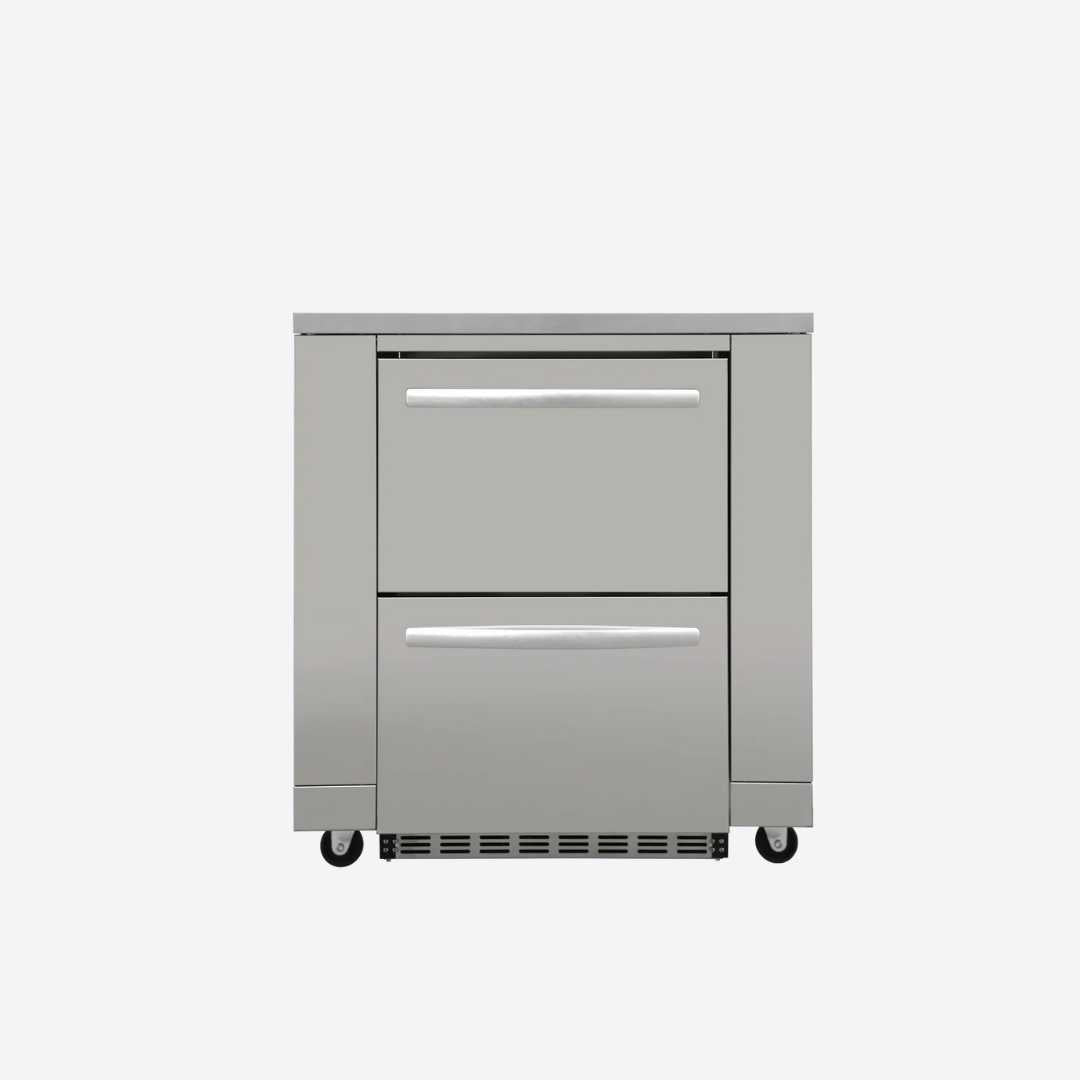 THOR Kitchen ofrece la potencia y el rendimiento de un electrodoméstico profesional de alta gama a un precio accesible. El módulo de gabinete para refrigerador THOR Kitchen de 35 pulgadas está diseñado para albergar nuestro cajón refrigerador bajo encimera de 24 pulgadas para interior/exterior o nuestra vinoteca de doble zona (electrodomésticos no incluidos). Ofrece espacio adicional en la encimera para sazonar ingredientes, picar productos y dejar reposar los filetes después de sellarlos a su punto medio perfecto.