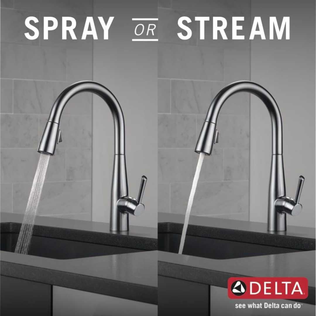 La marca Delta garantiza durabilidad y un diseño elegante que complementará cualquier estilo de cocina.