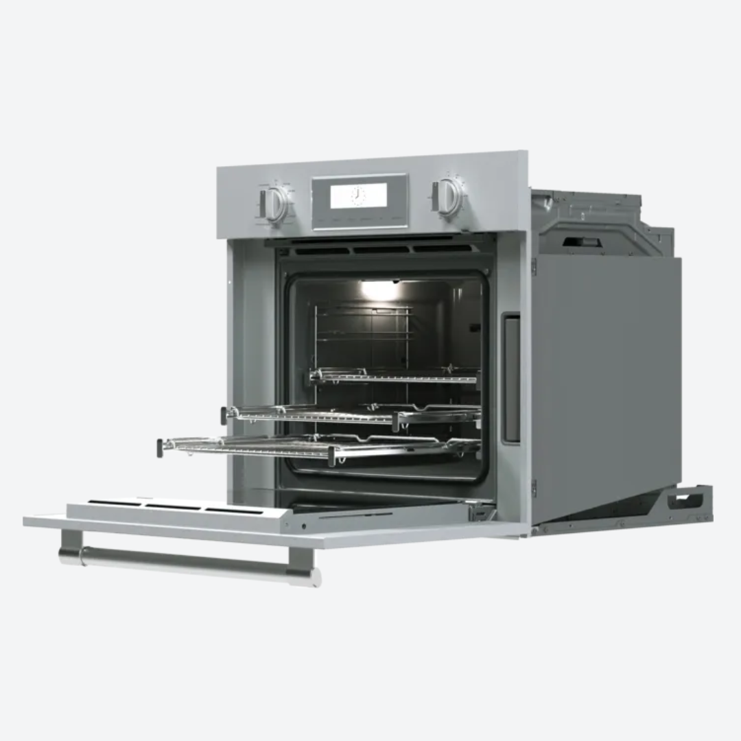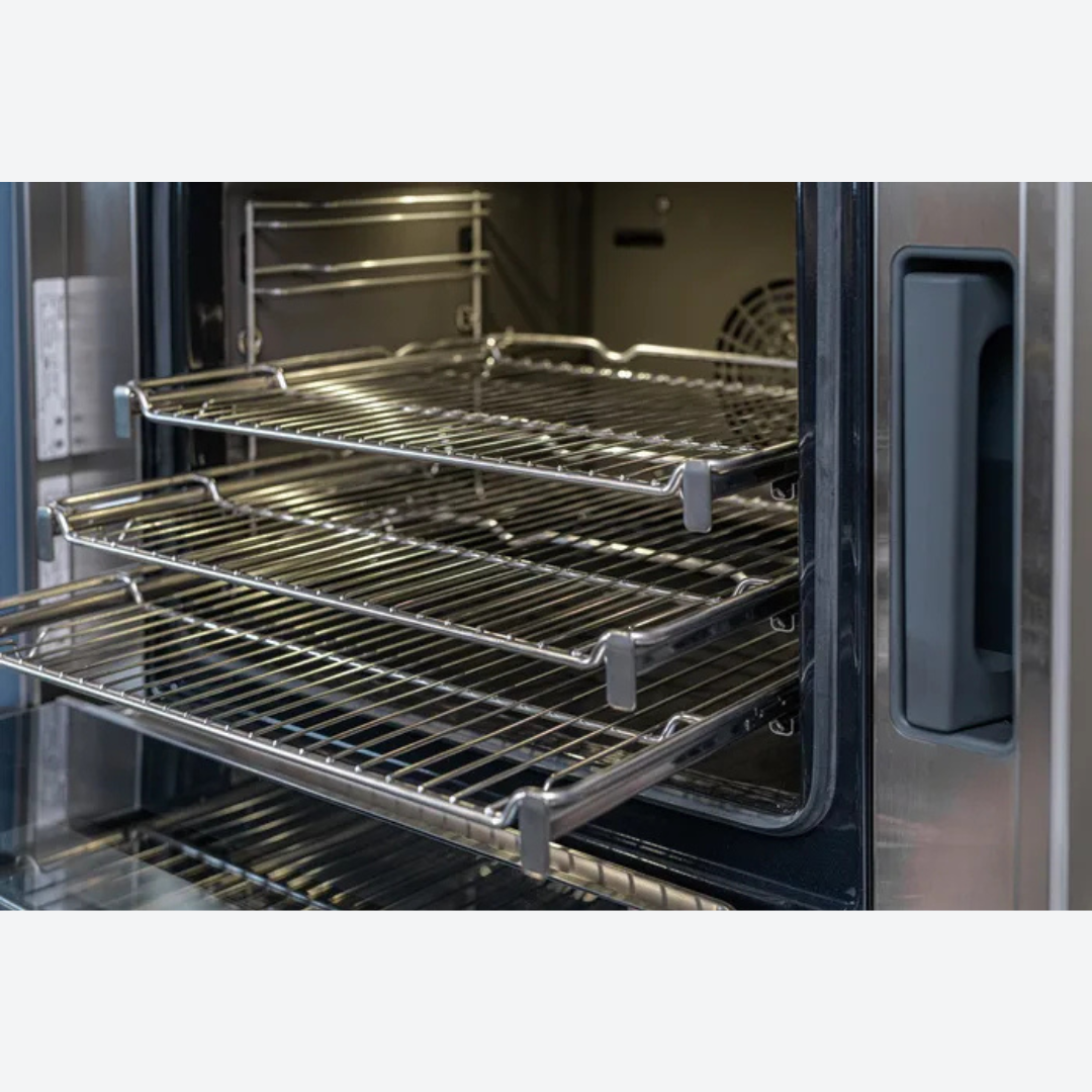 El horno de vapor y convección es húmedo por dentro y un exterior perfectamente dorado ofrece a los cocineros apasionados más soluciones de cocción: asar, vapor, convección real, vapor y convección.