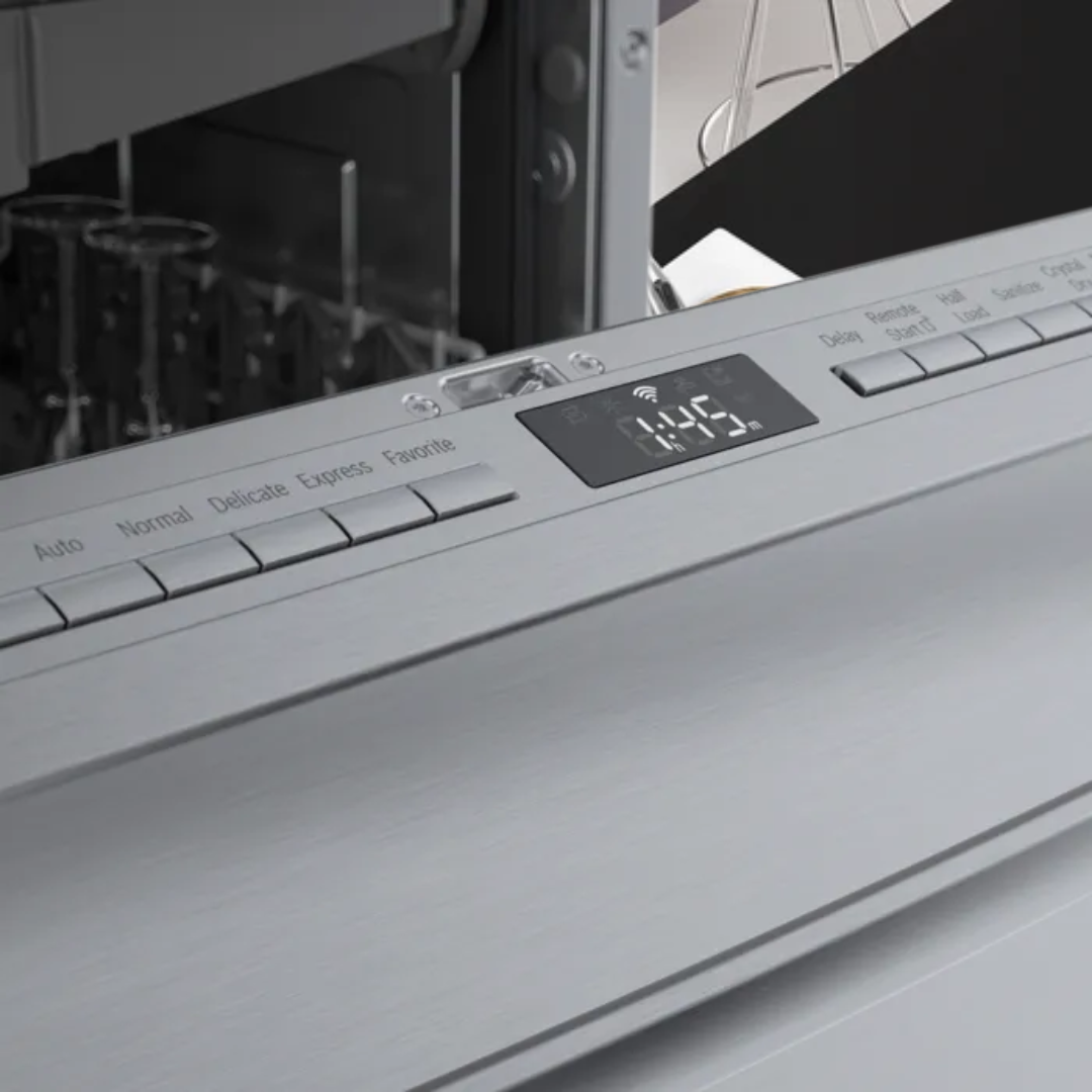 Lavavajillas Serie 800 de 24" empotrado de control superior, en acero inoxidable que cumple con la ADA está diseñado exclusivamente para clientes con requisitos de altura especiales. Incorpora tecnologías sofisticadas para un funcionamiento silencioso, un rendimiento excepcional y una flexibilidad excepcional. Además, incorpora un descalcificador de agua para garantizar una vajilla impecable y brillante.