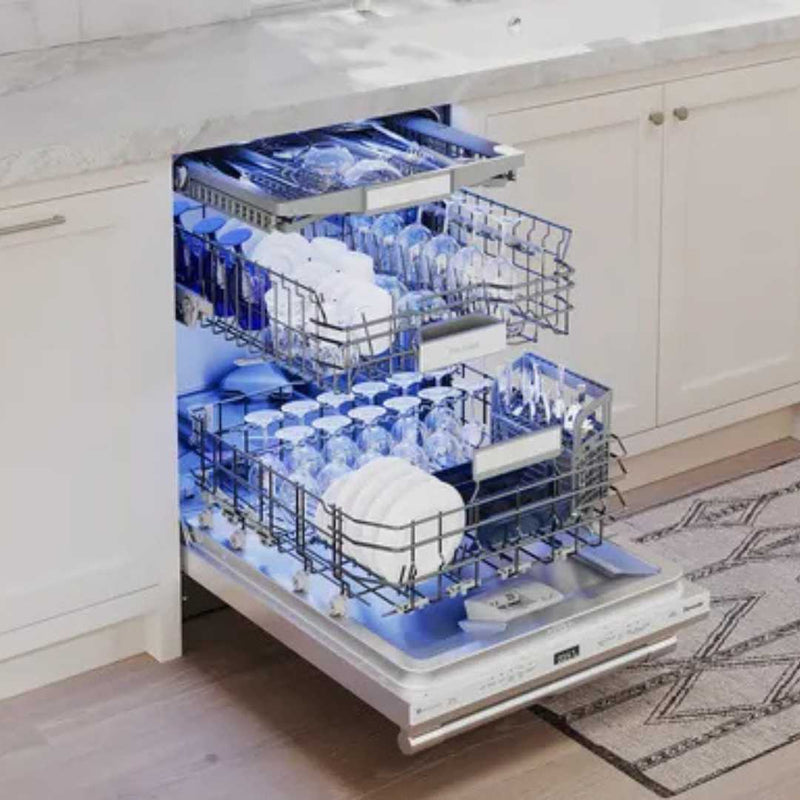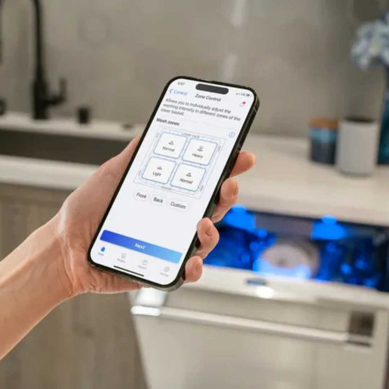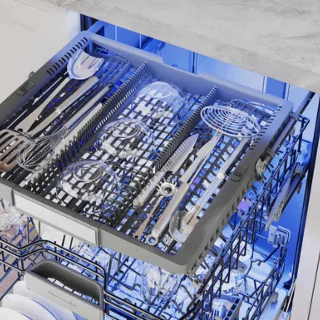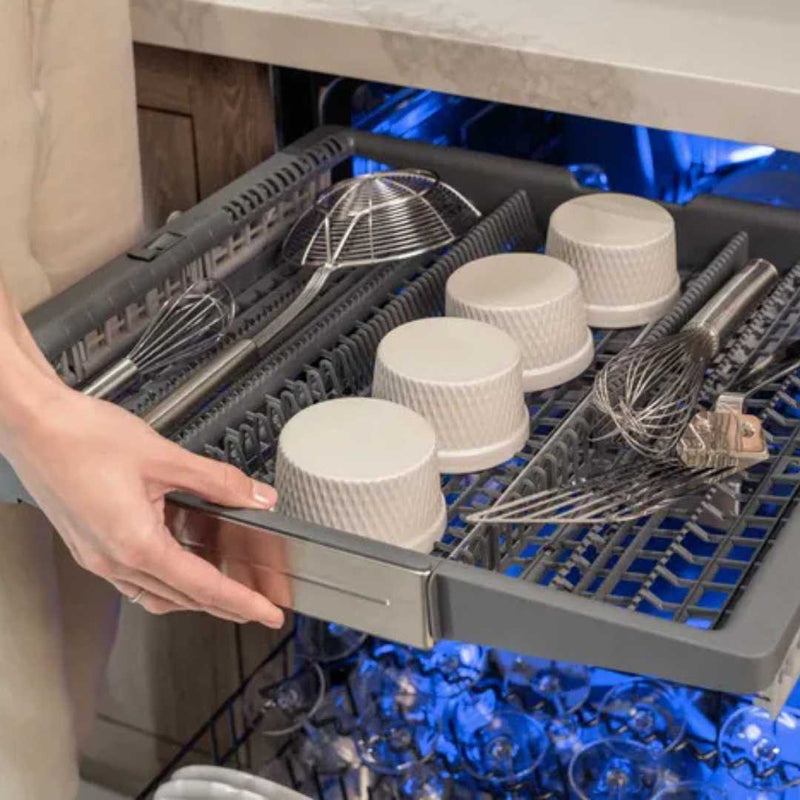 El lavavajillas empotrable Thermador DWHD661EFP Star Sapphire® de 24″ es una solución de limpieza premium que combina rendimiento profesional, diseño elegante en acero inoxidable y tecnología inteligente, ideal para cocinas modernas y exigentes. Con capacidad para 16 juegos de cubiertos, este modelo ofrece una limpieza potente y personalizada gracias al sistema ZoneControl™ PowerWash™, que permite dirigir la fuerza del lavado según la ubicación de la carga, y al tercer rack Adjustable Chef’s Tool Drawer® que maximiza la capacidad y versatilidad interior. Su exclusivo sistema StarDry™ con tecnología Zeolite absorbe la humedad y seca incluso los rincones más difíciles, superando a los lavavajillas tradicionales. Además, incorpora conectividad Home Connect® para control remoto inteligente y proyecta el tiempo restante con PowerBeam® en el piso para mayor comodidad.