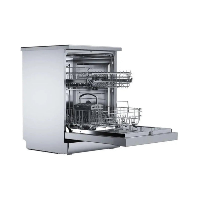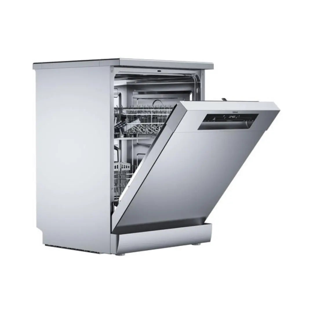 Haz que lavar los platos deje de ser una carga con el lavavajillas Teka DFS 26650, un modelo de libre instalación de 60 cm que ofrece espacio para 13 cubiertos y un panel de mandos electrónico con pantalla LED. Equípate con 6 programas de lavado (incluyendo Auto, Eco, Intensivo, Glass, Whisper y 1H), y disfruta de la innovadora función Extra Dry, que genera un calentamiento adicional durante el secado para resultados más brillantes y sin residuos. Con su modo Auto, el equipo ajusta automáticamente presión, cantidad de agua y temperatura según el nivel de suciedad. Su silencioso funcionamiento tipo “Whisper” permite disfrutar de un ambiente tranquilo durante el lavado. Añade la función de media carga, temporizador de inicio (1-24 h), indicador de sal y abrillantador, y tendrás una solución completa para tener tu cocina reluciente sin esfuerzo.