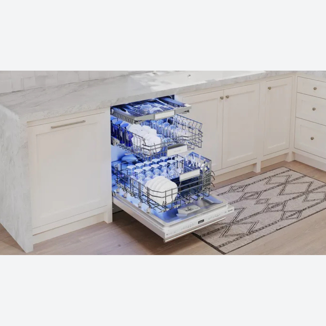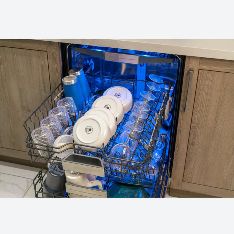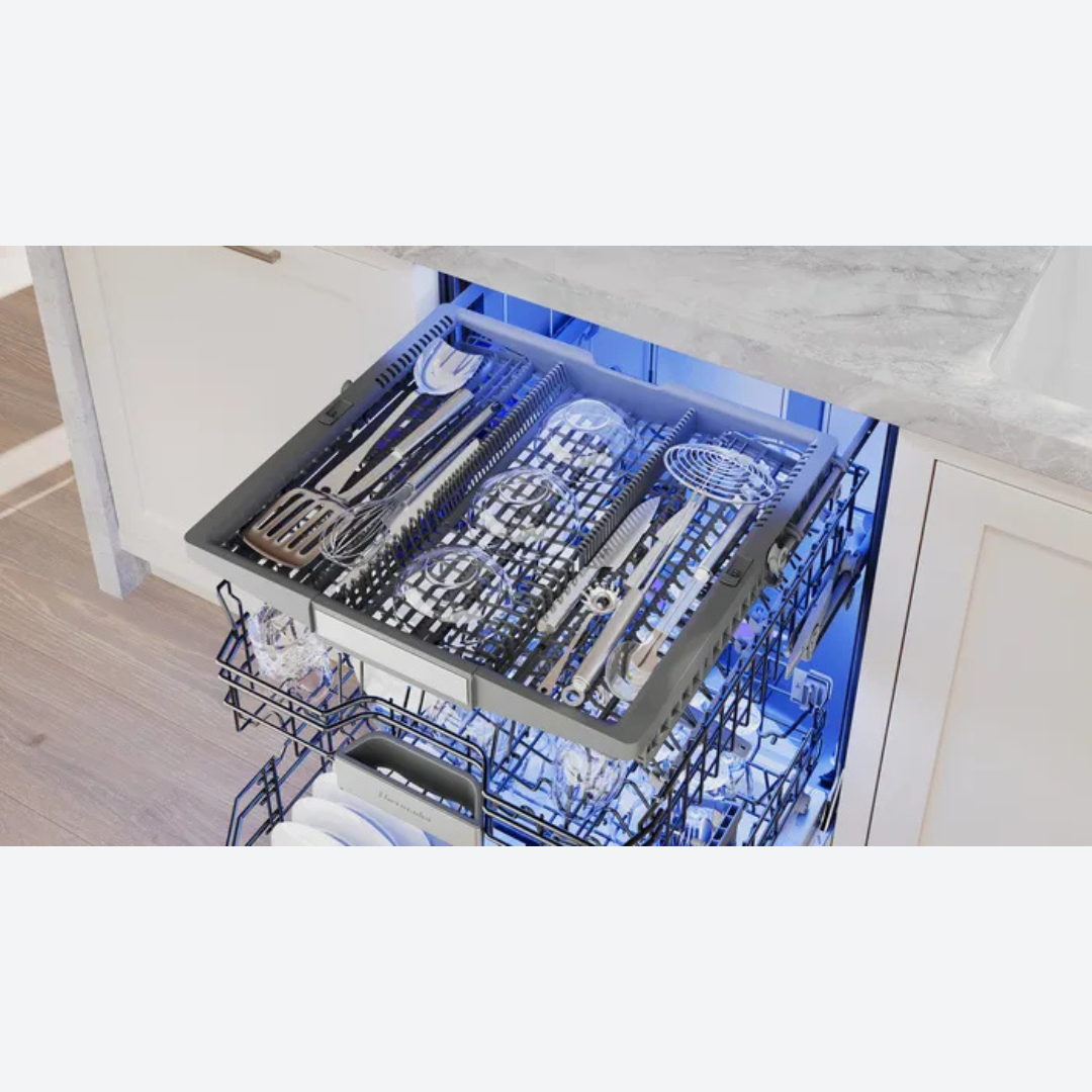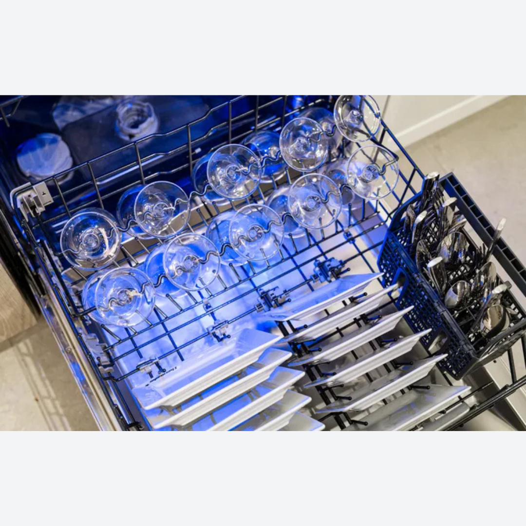 Eleve su estilo a un nivel radiante con el lavavajillas Star Sapphire, que ofrece un rendimiento impresionantemente silencioso a 42 dBA y una flexibilidad inigualable, con un cajón ajustable para utensilios de chef y una rejilla plegable para copas con capacidad para 18 copas de vino a la vez.