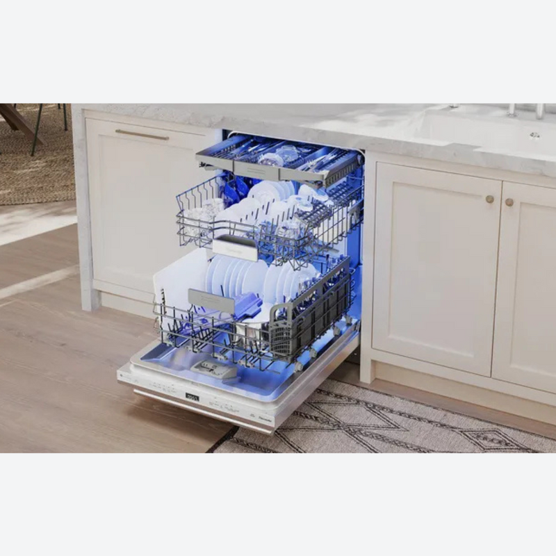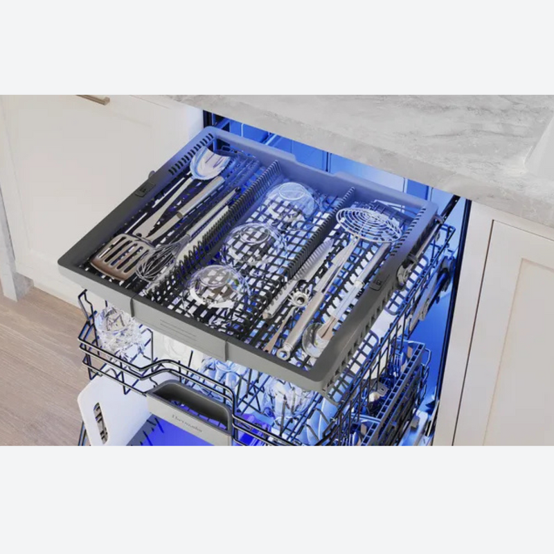 Con líneas sofisticadas, rendimiento de vanguardia y un nivel de ruido excepcionalmente bajo de 44 dBA, el lavavajillas Sapphire con WiFi incluye funciones exclusivas como StarDry y Sapphire Glow para una limpieza impecable mientras usted disfruta del momento. Sus púas plegables flexibles y cajón ajustable para utensilios de chef le permiten maximizar el espacio para utensilios y platos grandes.