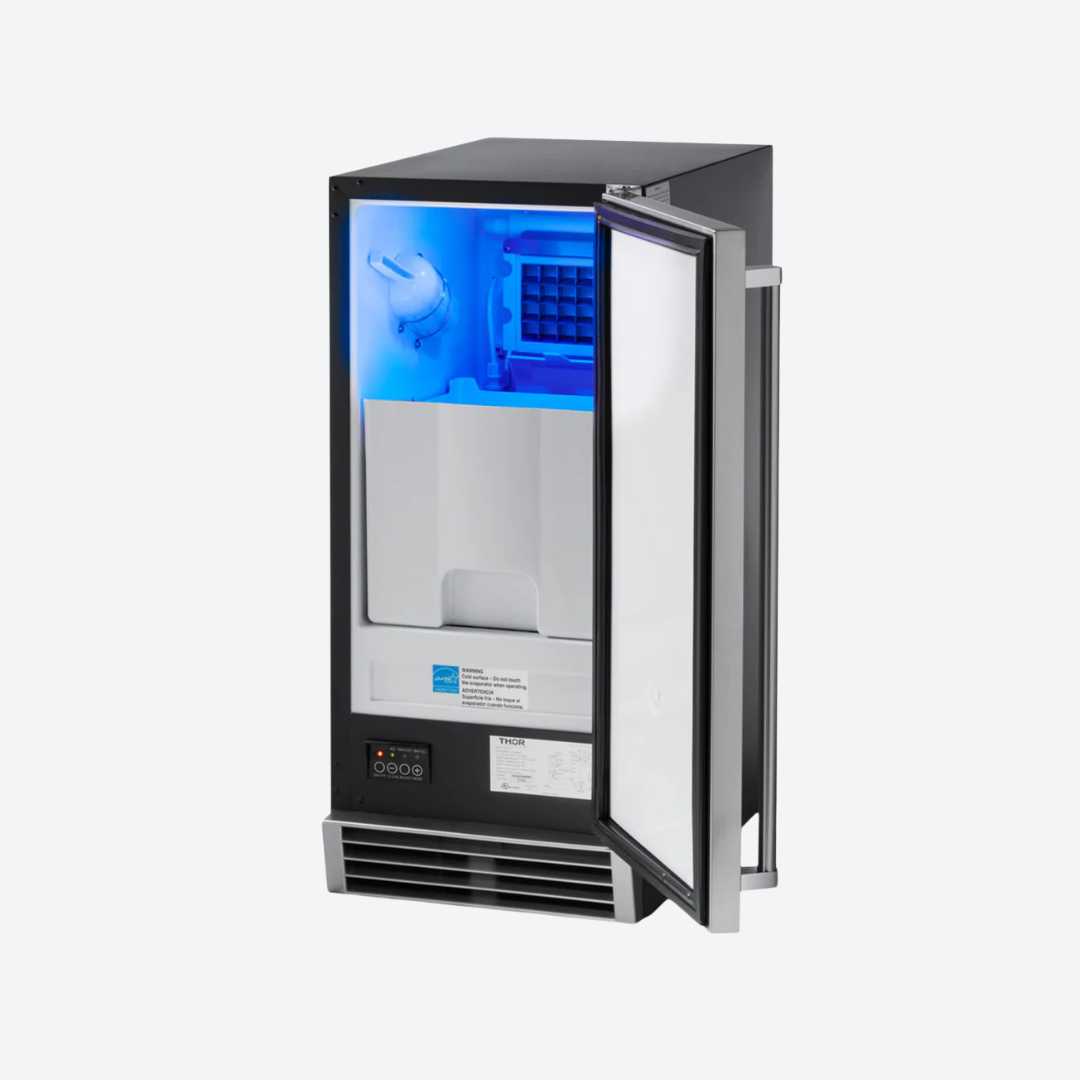 THOR Kitchen ofrece la potencia y el rendimiento de un electrodoméstico profesional de primera calidad a un precio accesible. El sueño de cualquier artista, la máquina de hielo empotrada de 15 pulgadas es el complemento perfecto para cualquier sistema de refrigeración del hogar. Mantenga abundante hielo fresco a mano con una máquina de hielo que produce 22,7 kg de hielo al día y almacena hasta 11,3 kg de hielo en un depósito de gran capacidad. Con una bomba integrada, la máquina de hielo es fácil de instalar en cualquier cocina o bar.