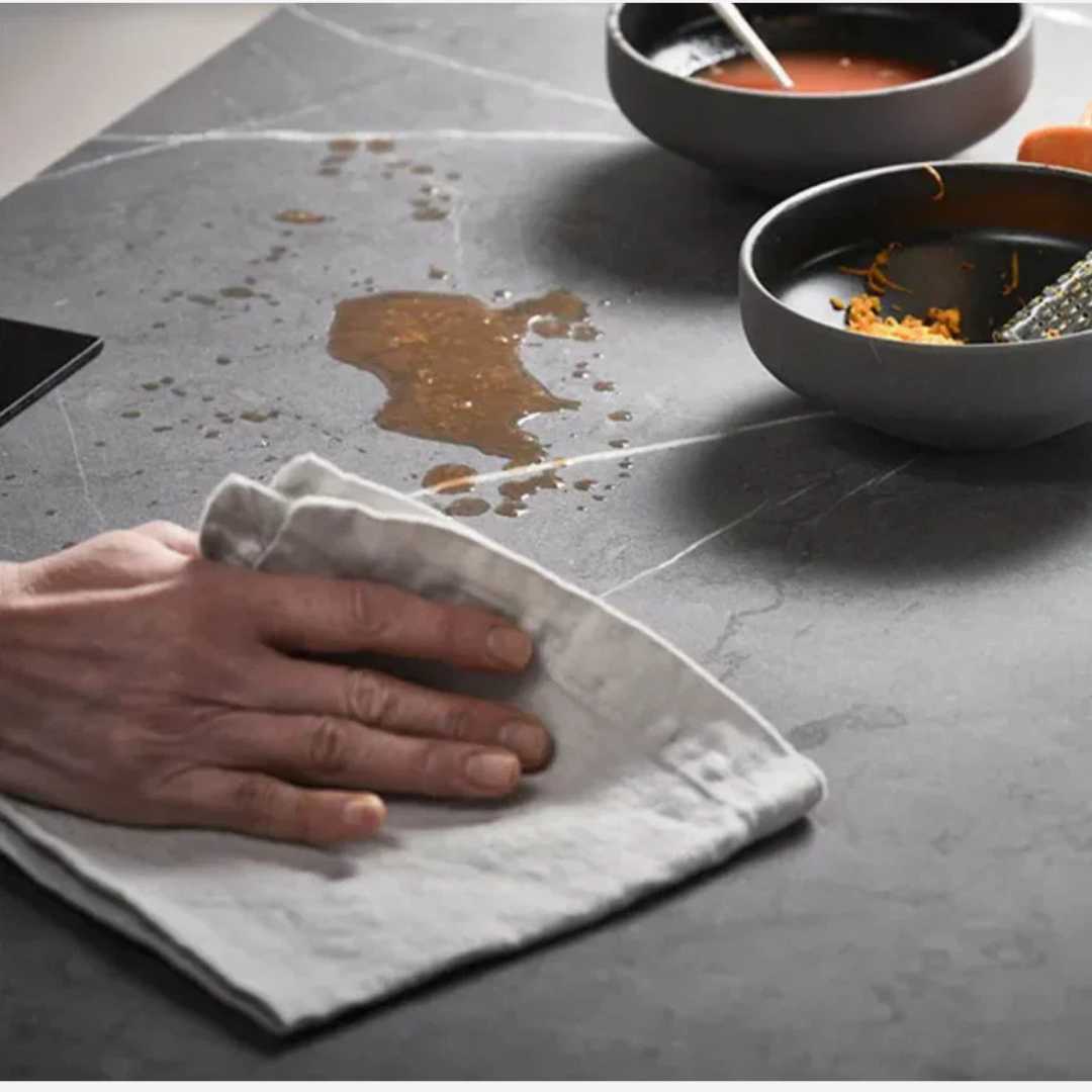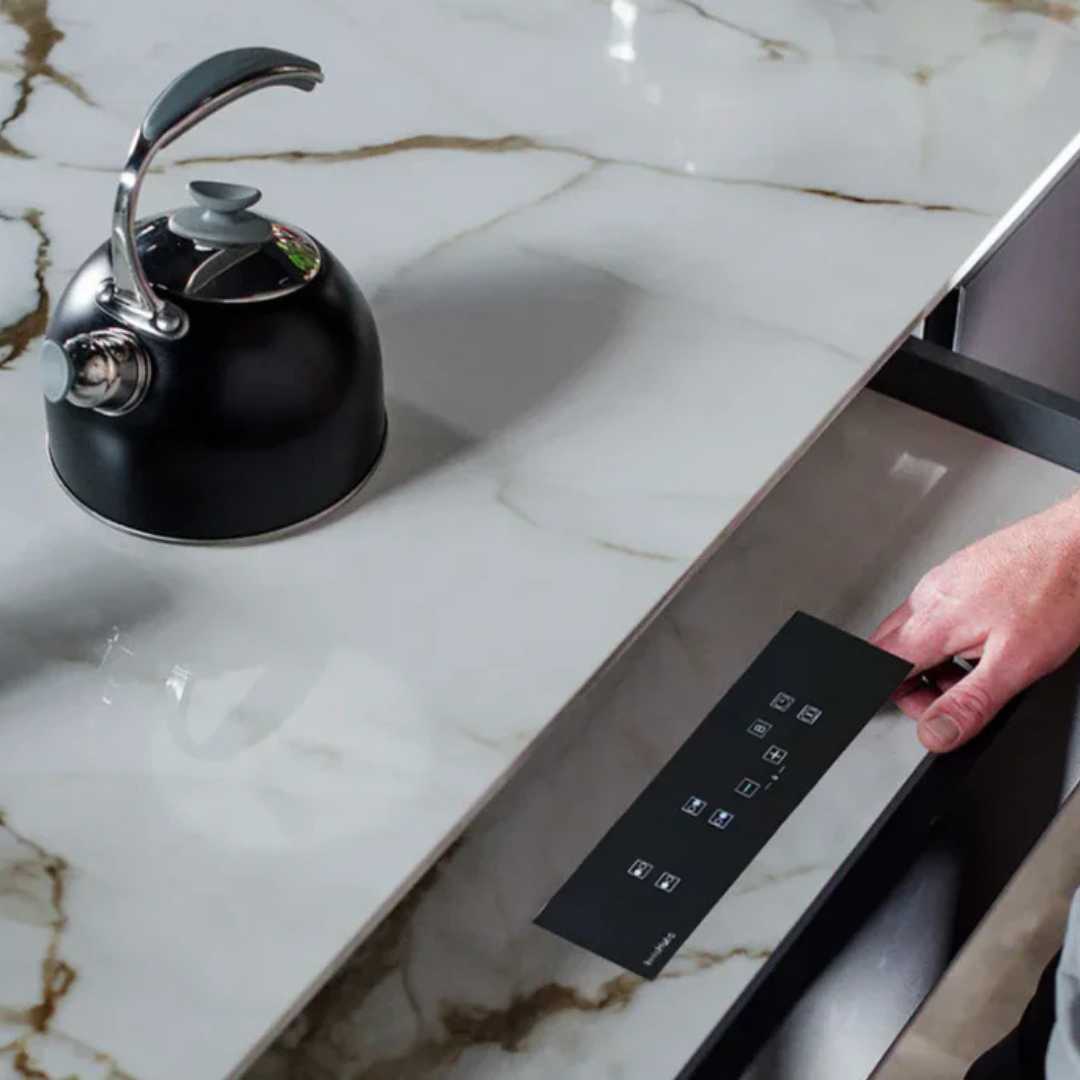 Se instala bajo encimera de piedra sinterizada con espesor recomendado de 1.2 cm