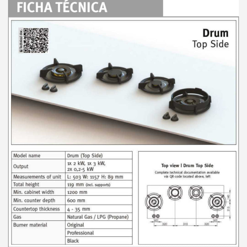 Parrilla a gas DRUM 4 quemadores botones arriba 115.7 cm 45.55″ PITT COOKING 51.01.04.114
