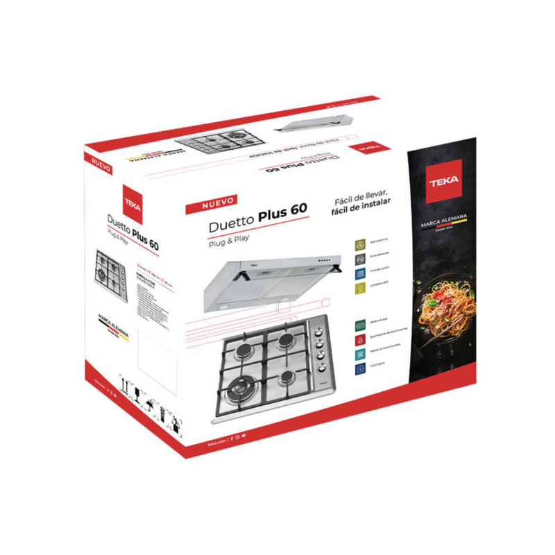 Kit TEKA Duetto Plus 60 con Potente campana empotrable y Parrilla con 4 quemadores de alta eficiencia.