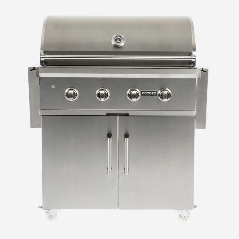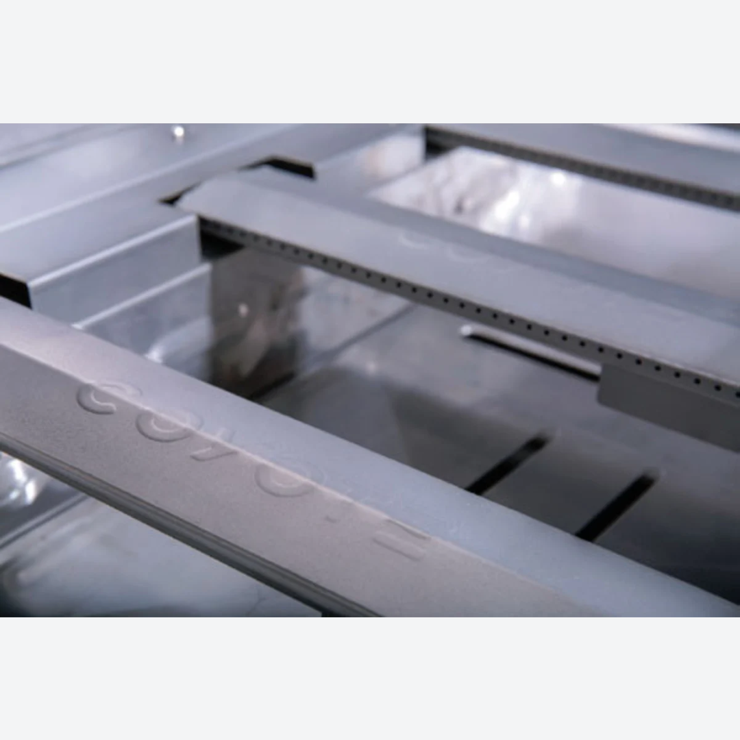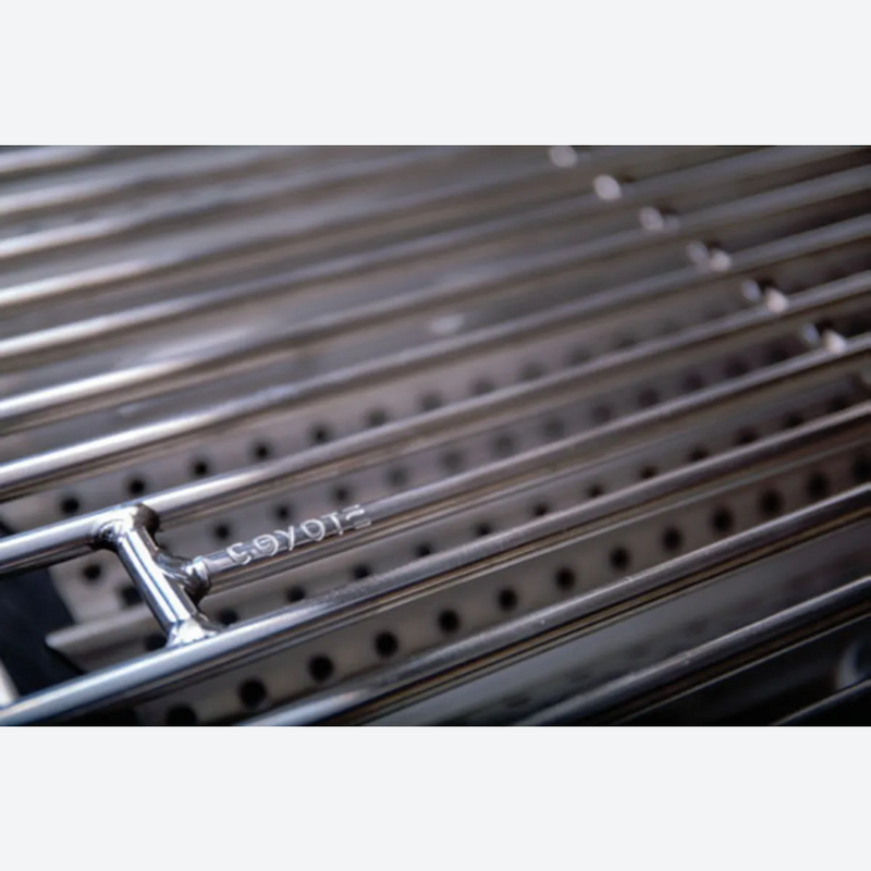 La parrilla Coyote Serie C de 91 cm está diseñada para satisfacer las necesidades de los parrilleros más exigentes. Está fabricada en acero inoxidable 304 con quemadores, rejillas y componentes de acero inoxidable soldados a mano. Todas las parrillas Coyote Serie C cuentan con cubiertas de doble pared y una caja de parrilla soldada continuamente con bordes sin costuras. Todas las parrillas Serie C también incluyen una rejilla de calentamiento de acero inoxidable, rejillas de control de calor Coyote y luces interiores en la campana.
