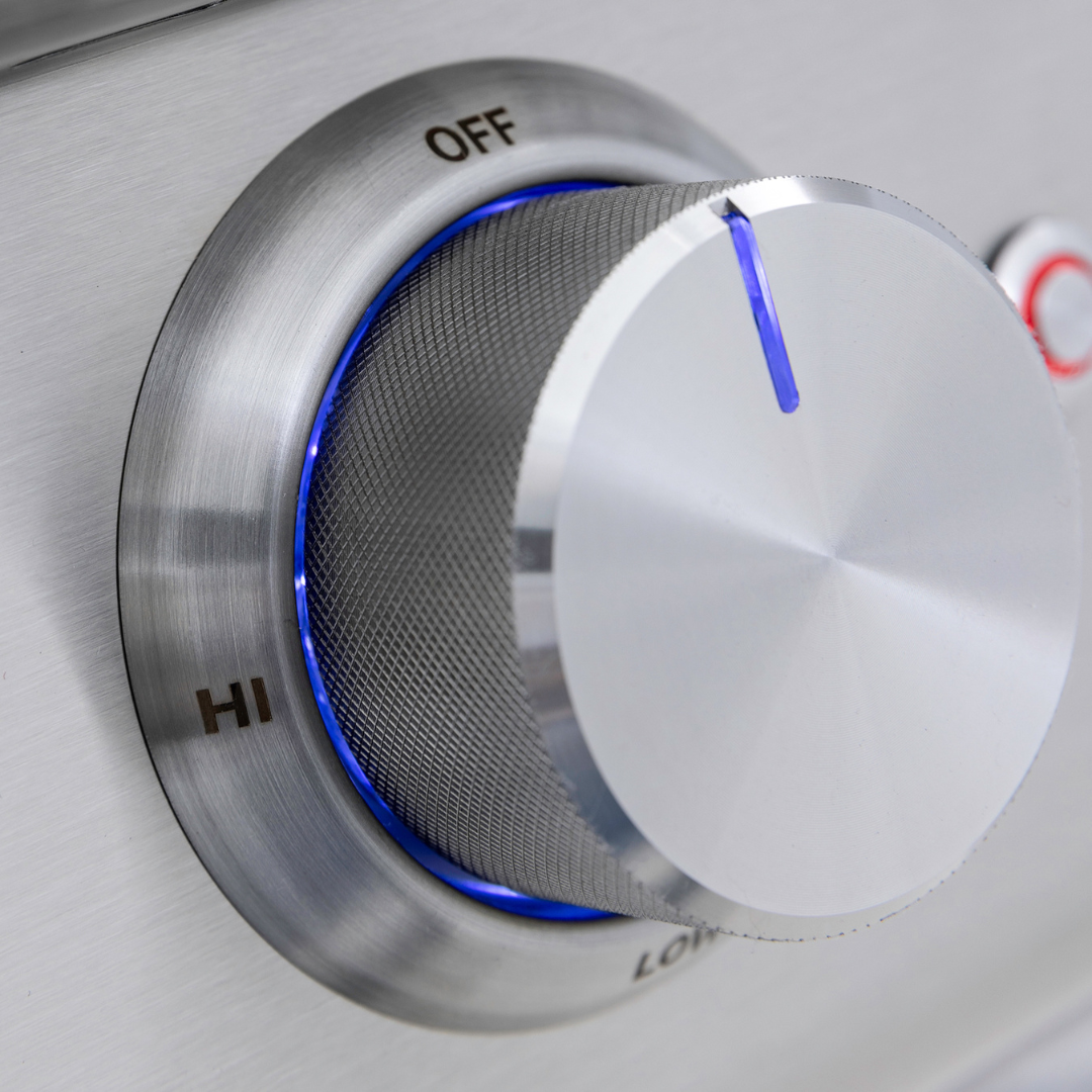 La parrilla de gas empotrada Blaze LTE Pro de 40 pulgadas y 5 quemadores ofrece un rendimiento excepcional gracias a su construcción de acero inoxidable de calidad comercial, control preciso de la llama y distribución uniforme del calor. Con cuatro potentes quemadores, un quemador infrarrojo trasero y un kit de asador, es perfecta para cocinar al aire libre de forma versátil. Los controles con iluminación LED y las luces interiores añaden estilo y comodidad para asar de noche.