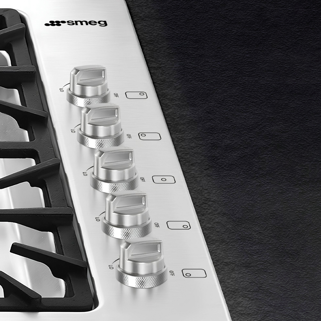 La parrilla de gas Smeg de 36 pulgadas cuenta con 5 quemadores diseñados para ofrecer versatilidad y potencia en la cocina. Su superficie de acero inoxidable facilita la limpieza y aporta durabilidad, mientras que las parrillas de hierro fundido aseguran estabilidad para todo tipo de ollas y sartenes. El encendido electrónico integrado proporciona seguridad y comodidad. Ideal para cocinas que buscan eficiencia y estilo profesional.