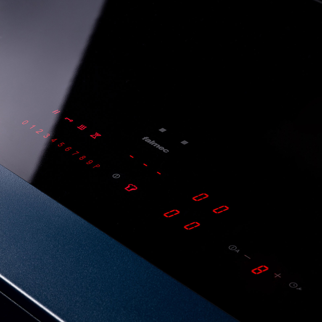 La configuración de la inducción en línea como en un piano, garantiza la máxima libertad y practicidad en las actividades de cocina, gracias a una superficie amplia, uniforme y sin obstáculos.