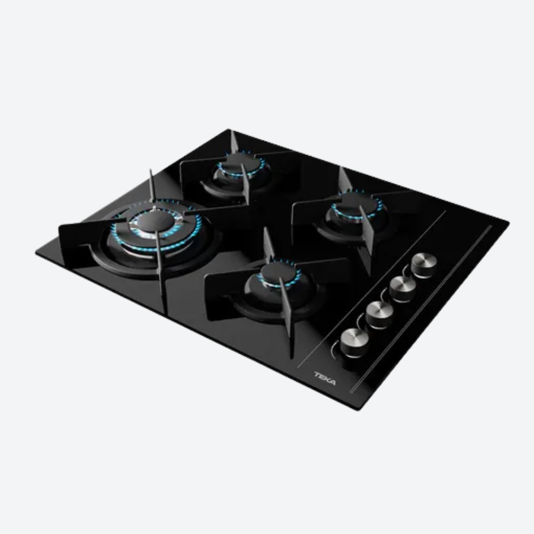 Combo Parrilla Gas + Campana Teka Duetto Crystal 60 Inox Color Negro 4 quemadores