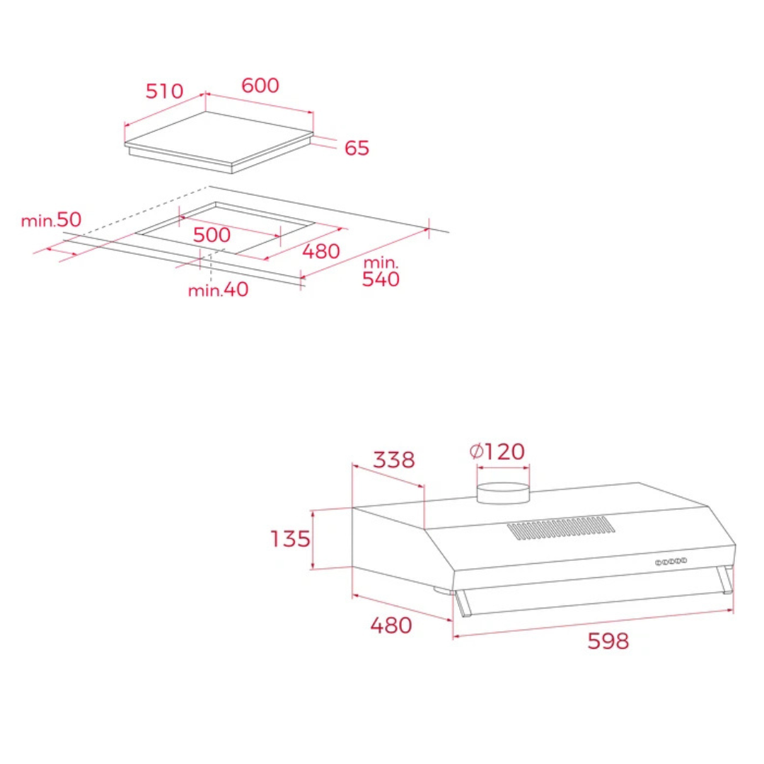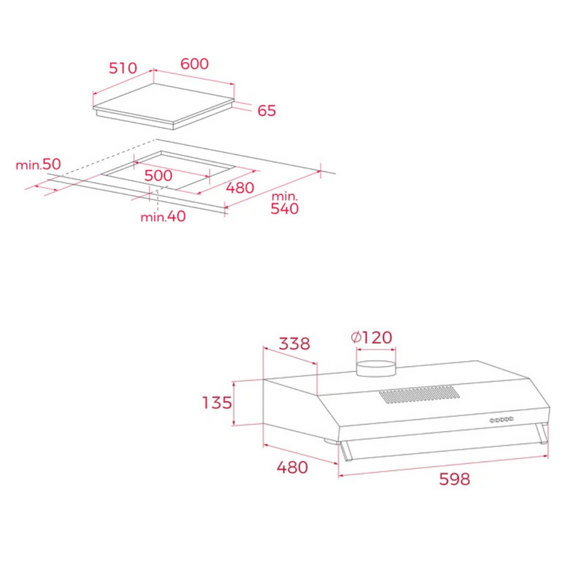 Parrilla vitrocerámica a gas + Campana Empotrable Pack 60.0 cm 23.62" - 59.8 cm 23.54" TEKA Duetto Crystal 60