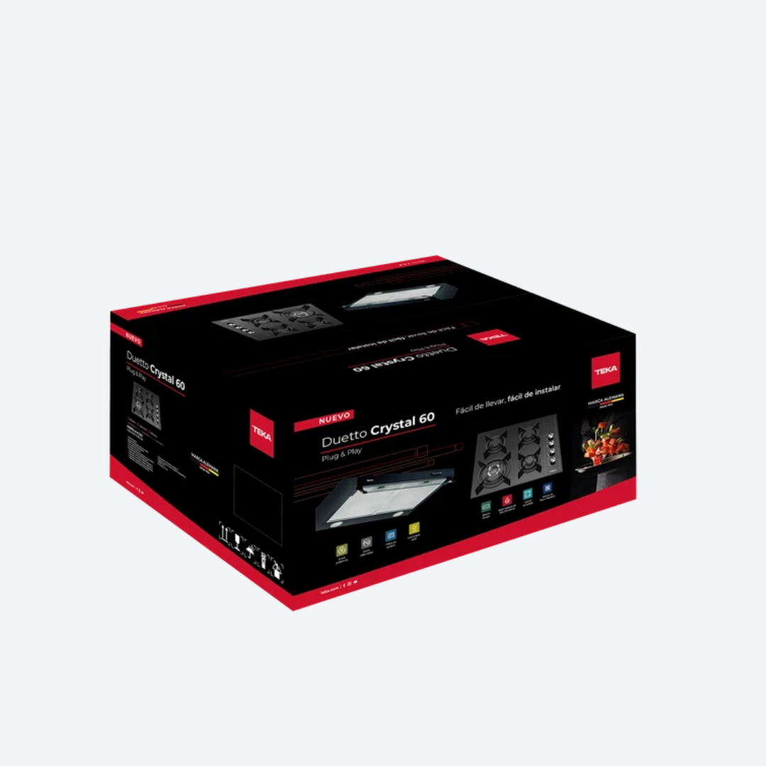 El kit TEKA Duetto Crystal 60, compuesto por campana y parrilla, es la solución perfecta para cocinas que buscan estilo y eficiencia en un solo paquete. La parrilla ofrece cocción precisa con controles intuitivos y materiales de alta calidad, mientras que la campana, con su diseño moderno en cristal negro, elimina eficazmente humo y olores. Este dueto está diseñado para integrarse con armonía en tu cocina, ofreciendo un rendimiento excepcional y una estética sofisticada en cada detalle