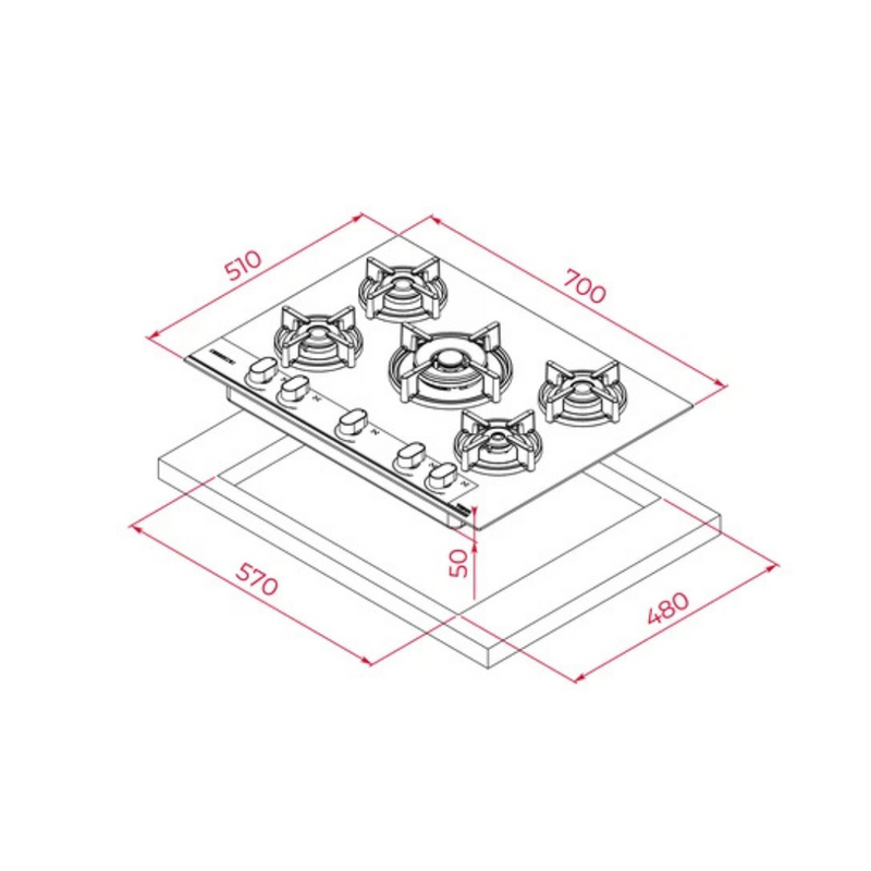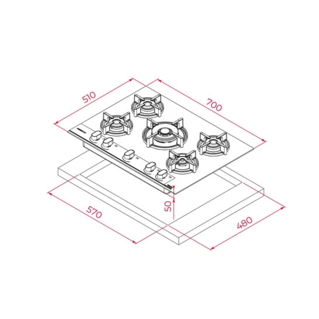 Parrilla Vitroceramica Gas LP 5 quemadores 70cm 27.56" TEKA TOTAL GBC 75-G1 GBA BM