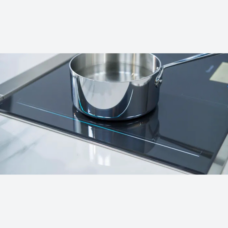La placa de inducción Thermador Freedom cuenta con una amplia superficie de cocción totalmente utilizable. Esta superficie de cocción cuenta con 56 elementos de inducción, lo que le permite calentar hasta 6 ollas en cualquier lugar.