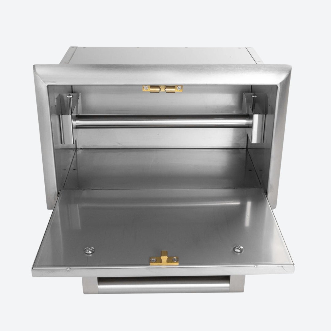 Imprescindible para cocinas al aire libre, el porta toallas de papel Coyote de 38 cm mantiene las toallas de papel a mano con un aspecto impecable. Su construcción de acero inoxidable garantiza su durabilidad, mientras que los cierres magnéticos facilitan el acceso.