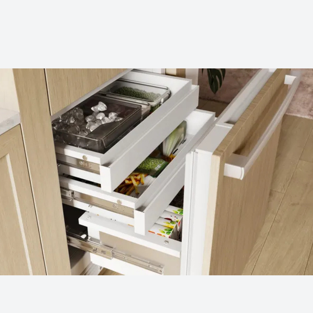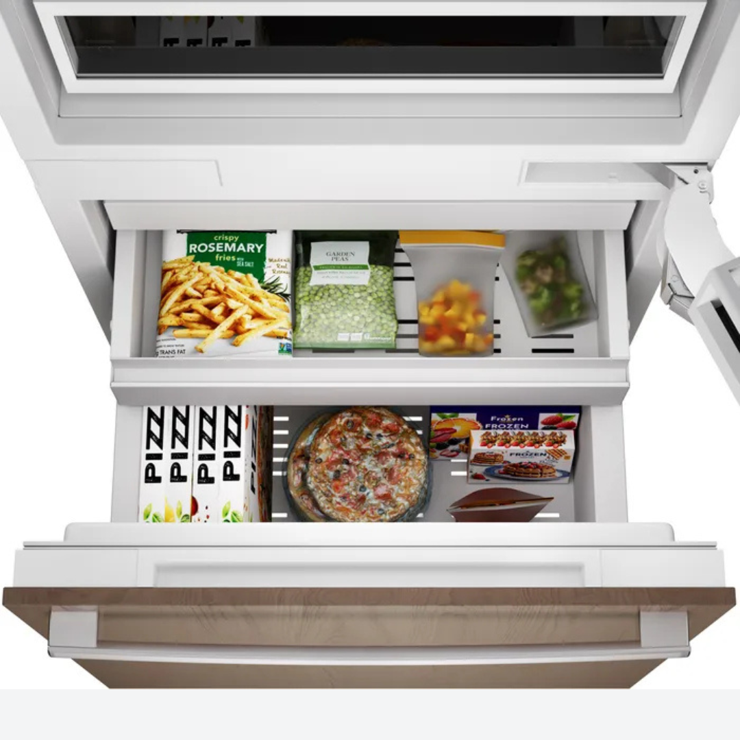 Montaje inferior, con capacidad total de 16.5 pies cúbicos, cajones de congelador de tres niveles, panel de control táctil a todo color, modo Sabbath y certificación.