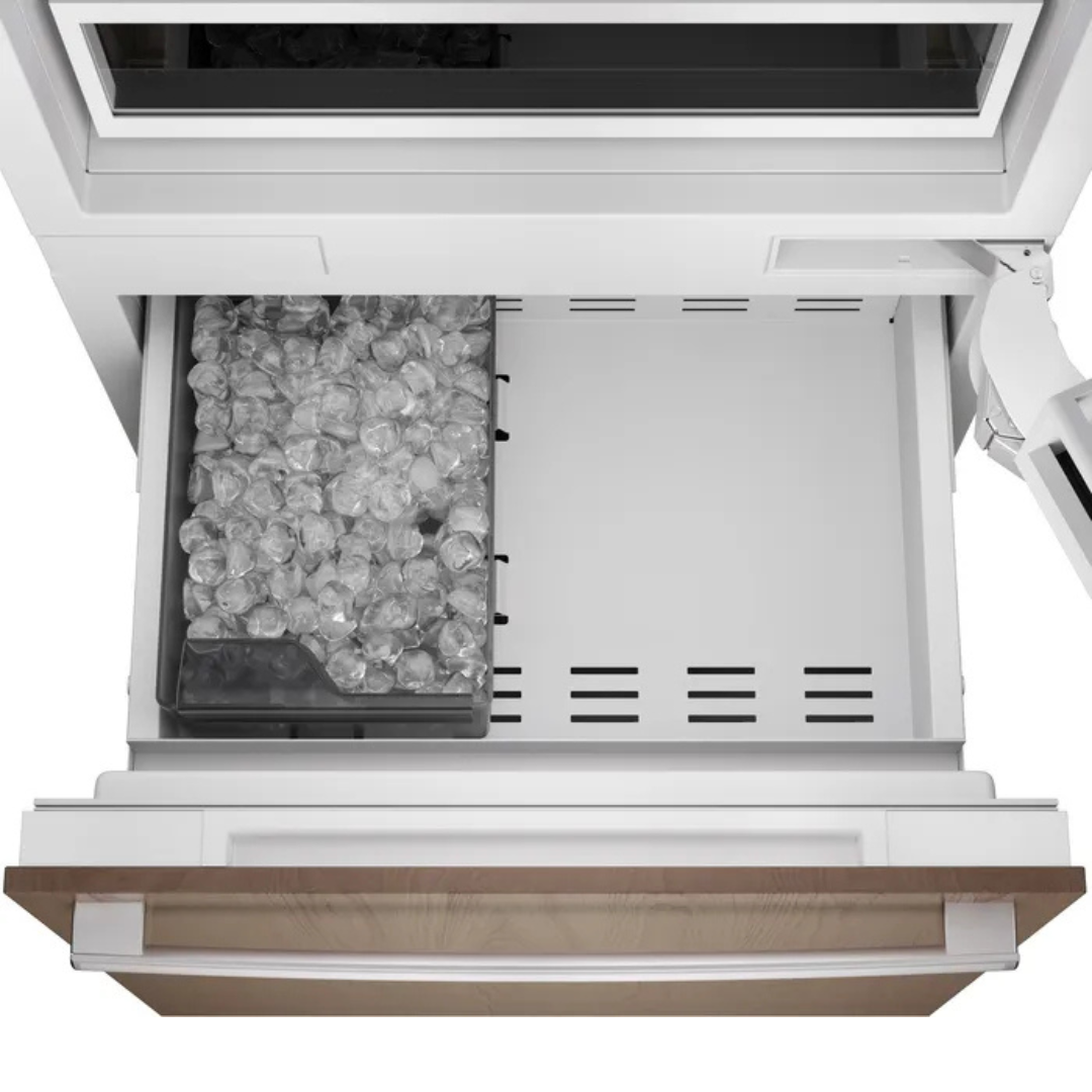 Refrigerador inteligente empotrable de 30 pulgadas con panel listo y montaje inferior, con capacidad total de 16.5 pies cúbicos. El Bosch B30IB100SP es un refrigerador empotrable de 30 pulgadas con panel listo. Elegante interior de acero inoxidable. Cuenta con máquina de hielo integrada, dispensador de agua interno, control táctil a todo color. Diseñado para instalación a ras, ofrece un rendimiento superior con una apariencia totalmente integrada y personalizable.