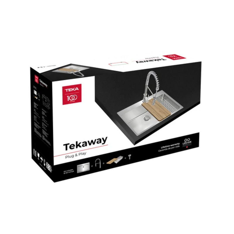 Incluye tabla para cortar, colador de acero inoxidable, contracanasta y kit de instalación.