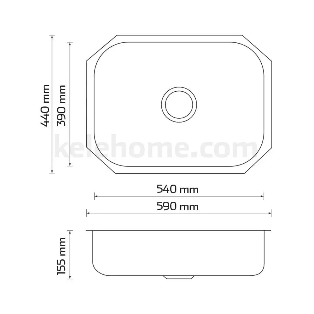 Tarja Submontable de Acero Inoxidable 59 cm 23.2" KELE KUS02318-6