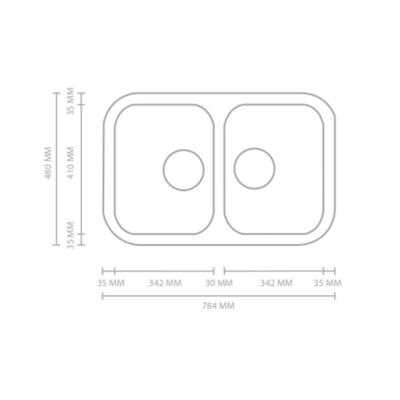 Tarja doble acero inoxidable 78.4 cm 30.87″ TECNOLAM CINZIA78,4X482V