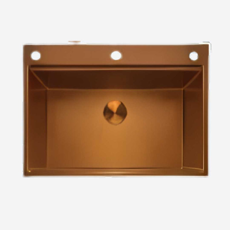 Construida en Acero Inoxidable 304, profundidad de 254 mm, contorno de 83.8 × 55.9 cm, calibre 16 y recubrimiento posterior de poliuretano. Todo en un sofisticado acabado Rose Gold PVD que aporta carácter y estilo a tu cocina.