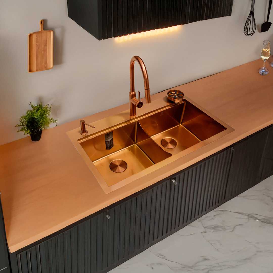 Workstation paquete Tarja + Grifo monomando Rose Gold 83.8cm 33" KELE KWS0110A-RG